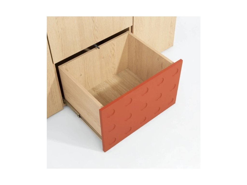 Šatní skříň Salsa SL1 je výrazným a funkčním prvkem kolekce Salsa. Její promyšlené vnitřní uspořádání umožňuje přehledné ukládání oblečení a doplňků. Oranžový akcent zásuvek oživuje dekor přírodního dubu a podtrhuje energický charakter kolekce. Ideální volba do studentských pokojů, kde je kladen důraz na praktičnost a hravý design.