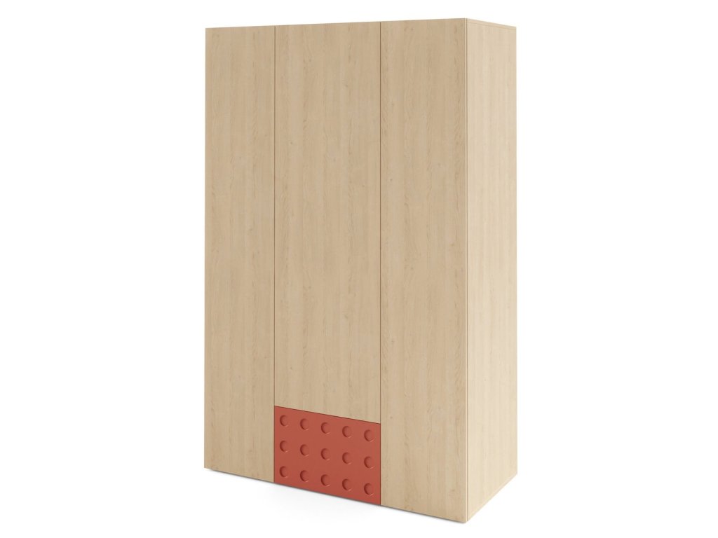 Třídveřová skříň Salsa SL1 nabízí praktický úložný prostor vhodný do pokoje teenagera nebo studenta. Na levé straně se nachází velká část s věšákovou tyčí a policí nad ní, určená k zavěšení oblečení. Pravá strana skříně je rozdělena na čtyři police, které poskytují prostor pro uložení složených věcí. Ve střední spodní části se nachází jedna zásuvka s oranžovým čelem pro ukládání drobných předmětů. Kombinace dekoru dub piškótový a oranžové barvy dodává skříni výrazný a moderní vzhled.