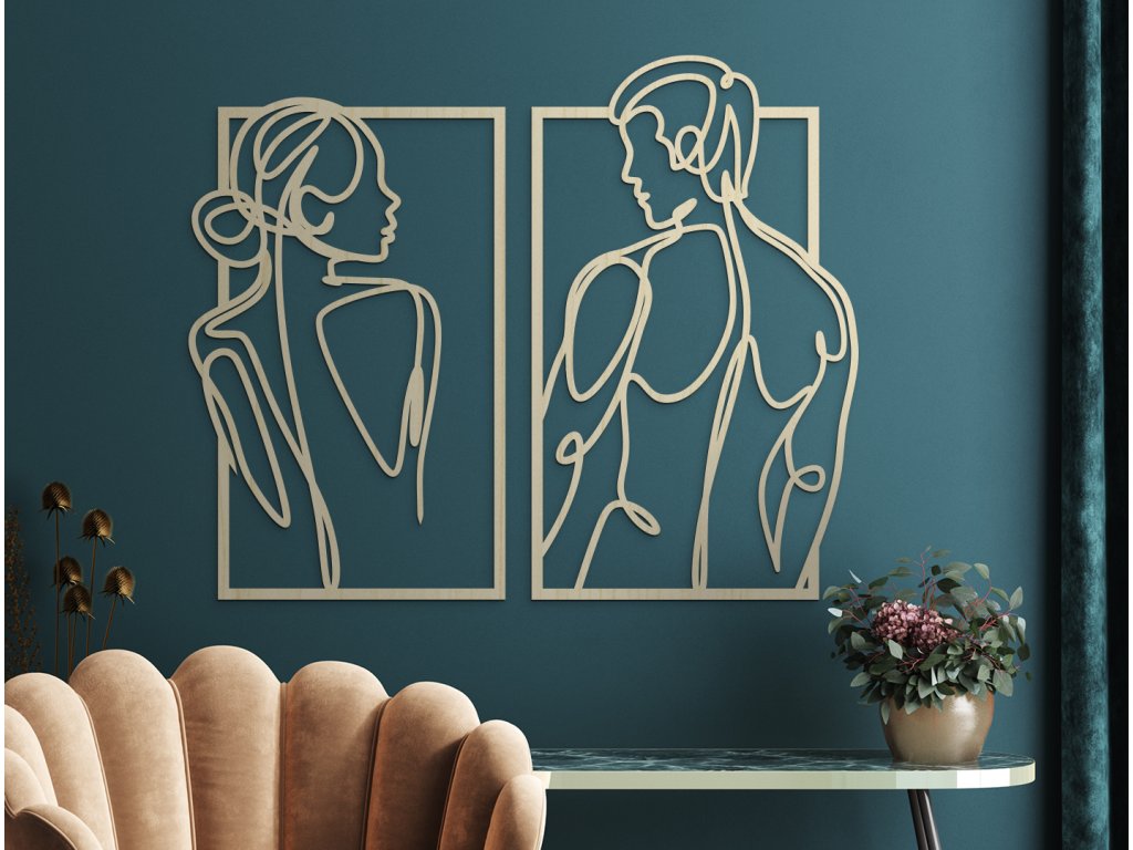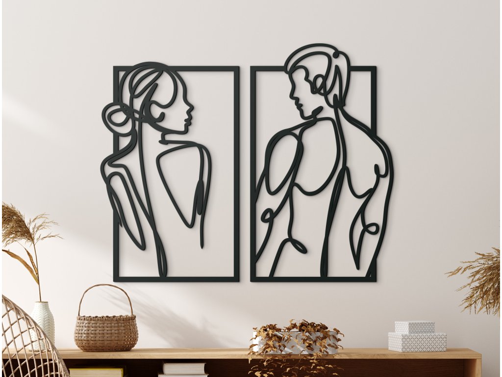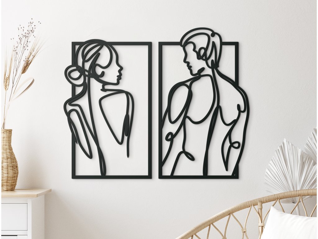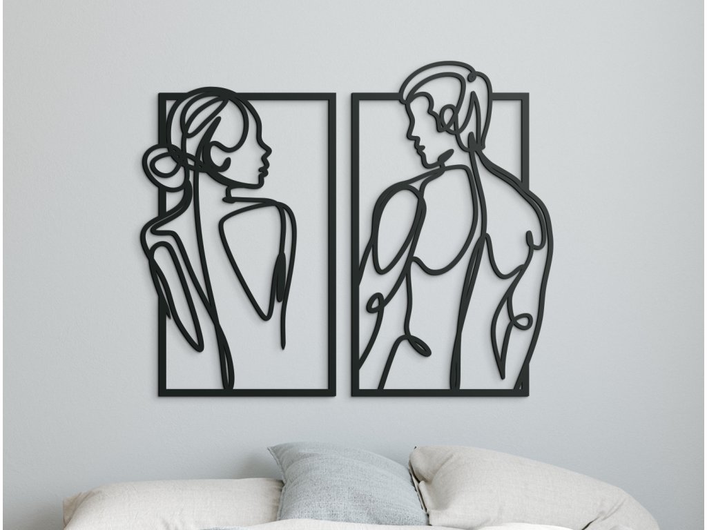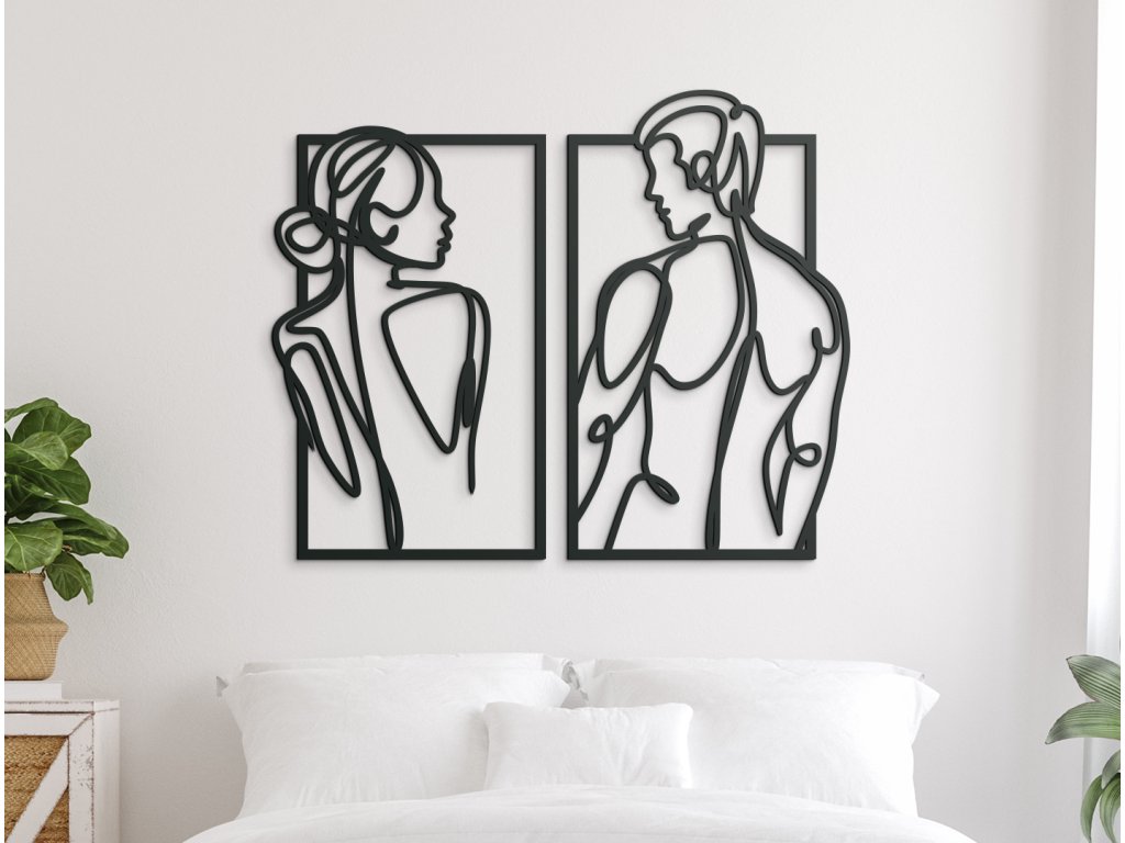 Máte v ložnici prázdnou stěnu a rádi byste ji vyplnili? Pověste si na ni tento 2-dílný minimalistický obraz ženy a muže a proměňte tak svoji ložnici na místo plné lásky a vášně.