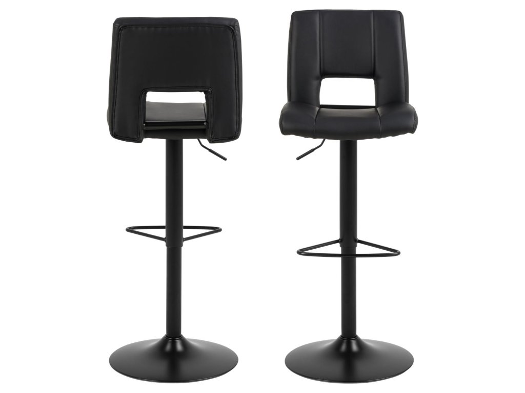 Židle je dostupná v elegantním provedení černá, které působí reprezentativně a zároveň nenápadně. Díky čalounění z ekokůže, jemně tvarovanému opěradlu a výškově nastavitelnému sedadlu je ideální volbou k barovému pultu či vyššímu kuchyňskému ostrůvku.
