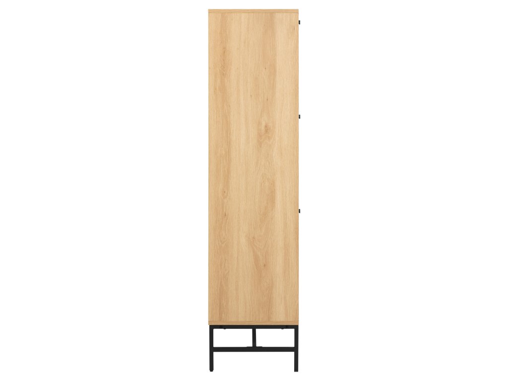Povrch z drsného melaminu v dubovém dekoru je nejen vizuálně přitažlivý, ale také snadno udržovatelný a odolný vůči každodennímu používání. Díky své výšce a kompaktním rozměrům se hodí i do užších prostor.