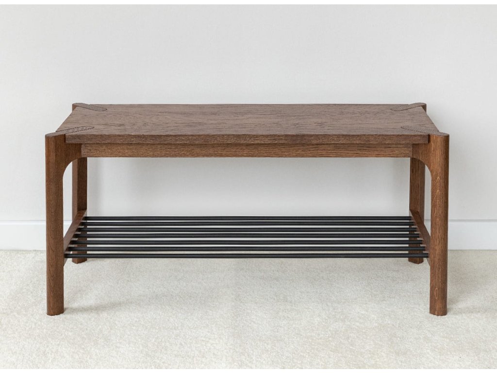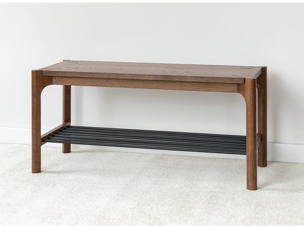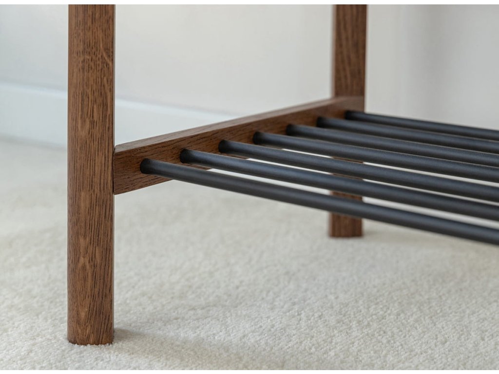 Botník Campi v prevedení tabakovo hnedá prináša do interiéru teplejší a výraznejší vzhľad pri zachovaní minimalistického charakteru. Konštrukcia z masívneho dubu doplnená kovovými prvkami zabezpečuje pevnosť a dlhú životnosť. Olejovaná povrchová úprava zvýrazňuje štruktúru dreva a dodáva mu hĺbku. Praktické rozdelenie na hornú odkladaciu plochu a spodnú policu umožňuje efektívne usporiadanie obuvi aj doplnkov. Rozmery: 83 × 40 × 33 cm (š × v × h).
