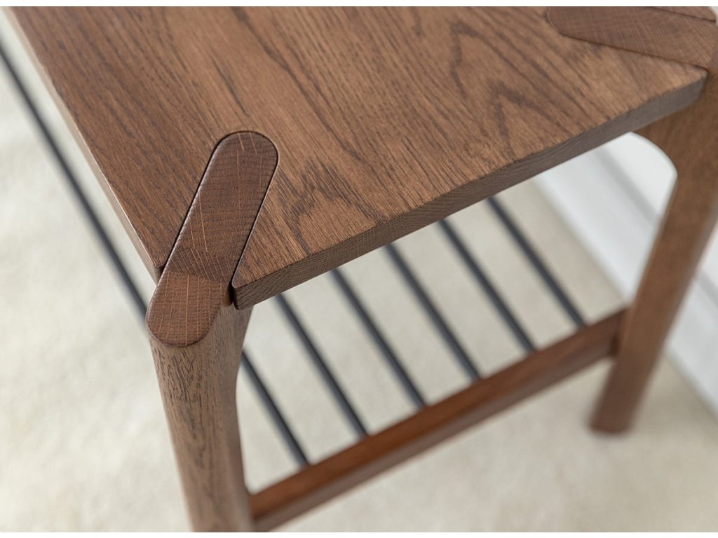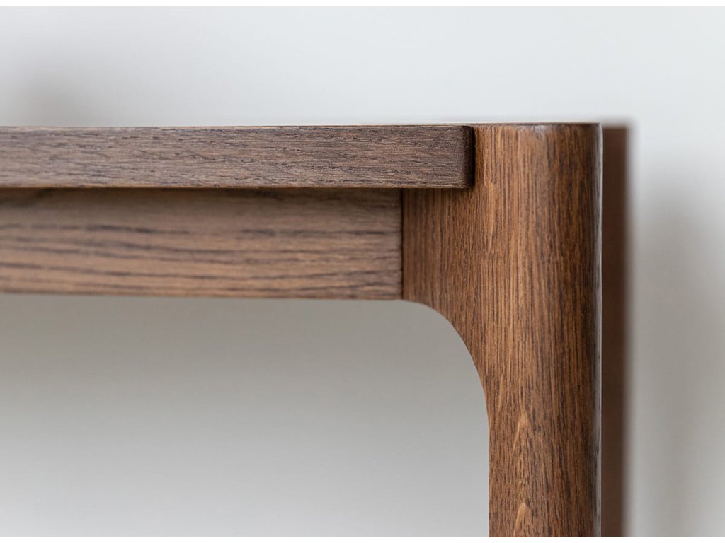 Celá séria je vyrobená z kvalitného dubového masívu, ktorý vyniká dlhou životnosťou. Konečná úprava olejovaním v polomatnom prevedení zvýrazňuje prirodzenú kresbu dreva, chráni povrch a zachováva jeho autentický charakter. Kolekcia je dostupná v dvoch farebných variantoch – prírodný dub a tabakovo hnedá.
