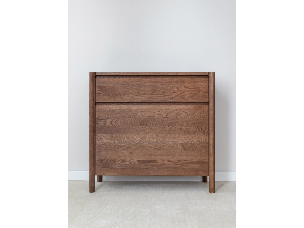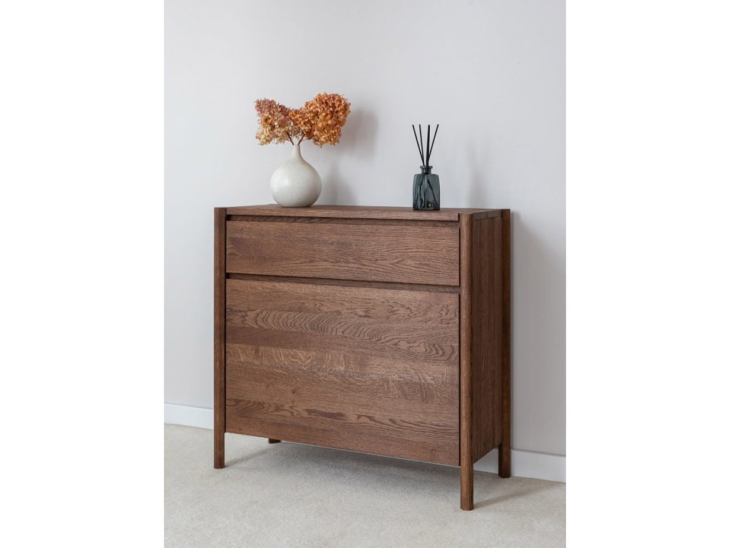 Botníková skrinka Campi v prevedení tabakovo hnedá prináša do priestoru teplý a výrazný vizuálny prvok spojený s praktickým využitím. Konštrukcia z masívneho dubu s olejovanou povrchovou úpravou zaručuje odolnosť a dlhú životnosť. Kombinácia zásuvky s tichým dovieraním a uzatváracieho priestoru umožňuje prehľadné usporiadanie topánok aj doplnkov. Ideálna voľba pre predsieň, kde je dôležitý poriadok aj štýl. Rozmery: 83 × 80 × 33 cm (š × v × h).