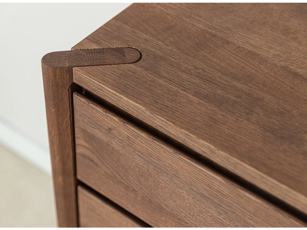 Celá séria je vyrobená z kvalitného dubového masívu, ktorý vyniká dlhou životnosťou. Konečná úprava olejovaním v polomatnom prevedení zvýrazňuje prirodzenú kresbu dreva, chráni povrch a zachováva jeho autentický charakter. Kolekcia je dostupná v dvoch farebných variantoch – prírodný dub a tabakovo hnedá.