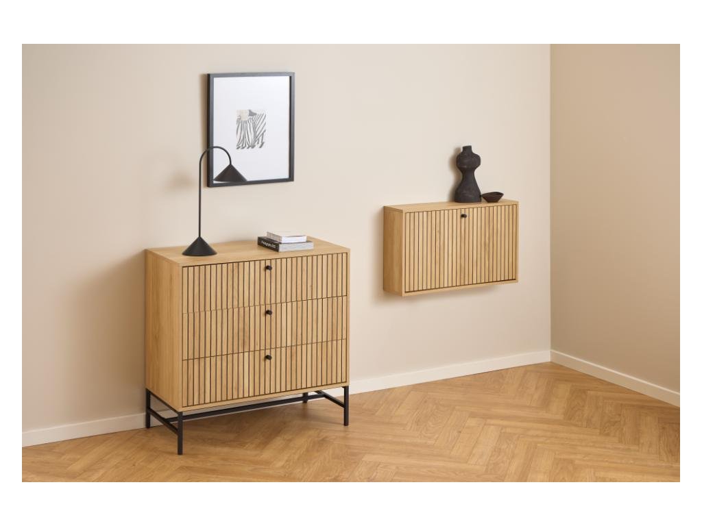 Elegantní design, funkčnost a nástěnná montáž dělají z této skříňky ideální řešení pro chodby, předsíně nebo vstupní prostory.