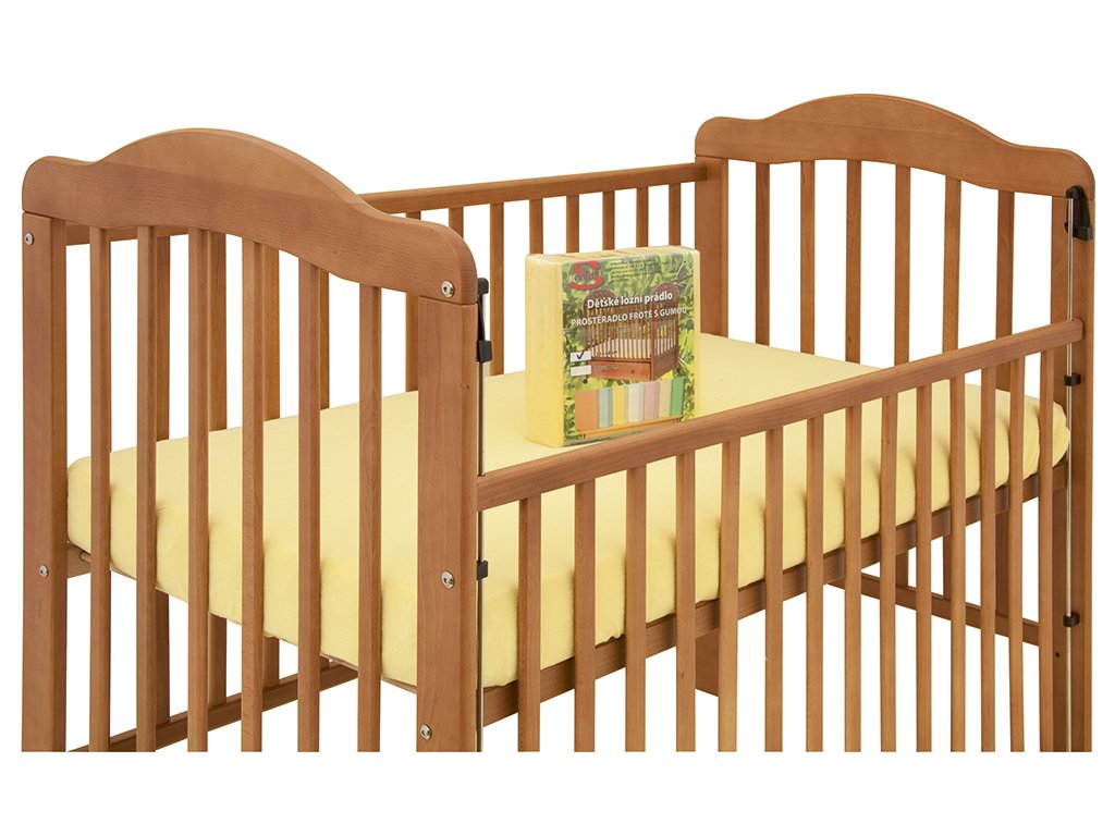 Žluté froté prostěradlo do postýlky 120 x 60 cm, zajistí ničím nerušený a pohodlný spánek. Je vyrobeno z kvalitních materiálů, které se postarají o prodyšnost matrace a komfort děťátka.