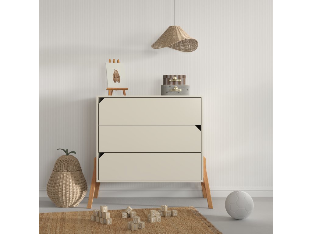 Designová komoda z kolekce Lotta s příjemným designem. Uvítáte především tři objemné úložné zásuvky, do kterých přehledně uložíte dětské oblečení či různé drobnosti.