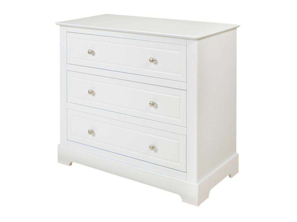 Elegantná komoda Marylou s 3 zásuvkami, do ktorých uložíte oblečenie a veľa drobností. Vyrobená z kvalitných materiálov, bude vám slúžiť veľa rokov. Ku komode si môžete prikúpiť prebaľovací pult.