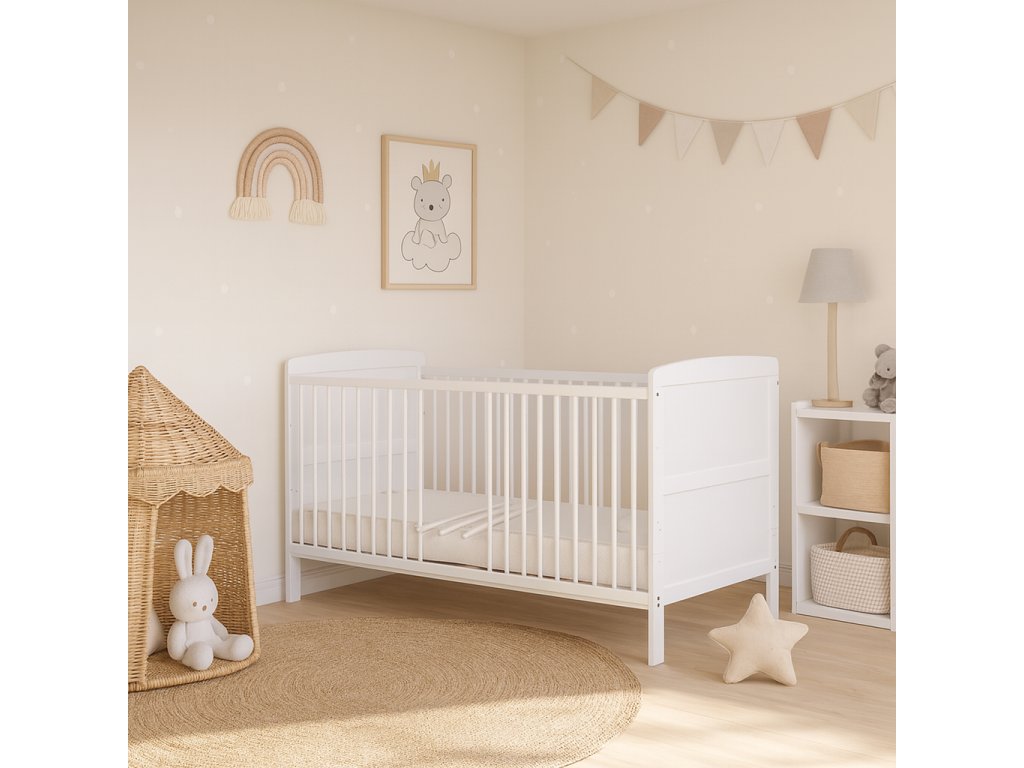 Dětská dřevěná postýlka poslouží novorozencům, batolatům i dětem vyššího věku, protože se dá přizpůsobit různému věku dítěte. Velikost postýlky umožňuje její používání až do 6 let věku dítěte. Zakoupením této postýlky získáte jistotu a bezpečí pro vaše dítě na dlouhá léta. Dětská postýlka obsahuje vyjímatelné příčky a nastavitelný rošt do dvou poloh. Matrace není součástí postýlky, ale můžete si ji doobjednat. Z postýlky můžete v pozdějším věku dítěte oddělit bočnice a zůstane tak jen válenda. Tu můžete popřípadě doplnit bočnicí, tzv. zábranou z naší nabídky, aby dítě z postele nespadlo.