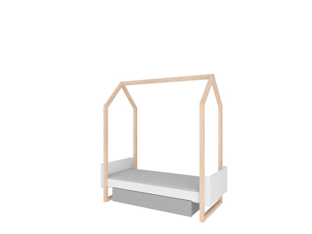 Dětská postýlka s dekorativním, funkčním prvkem v podobě rámu, který má tvar domečku. Postýlka roste s dítětem, později může sloužit jako postel nebo praktická pohovka. Vhodná ke zdi i do prostoru.