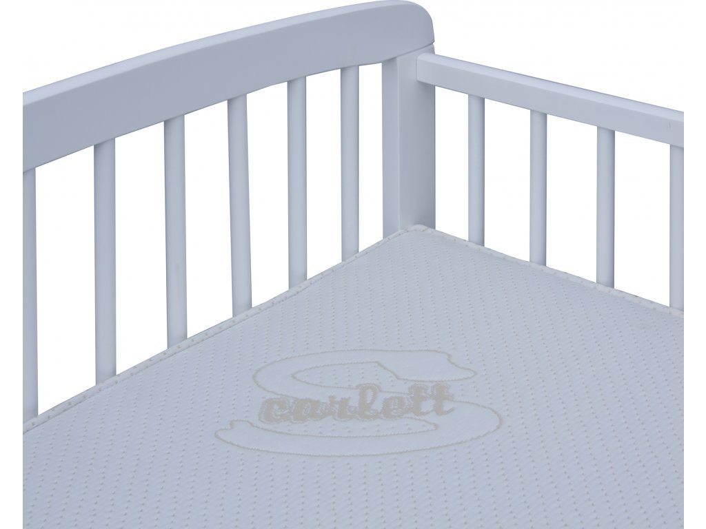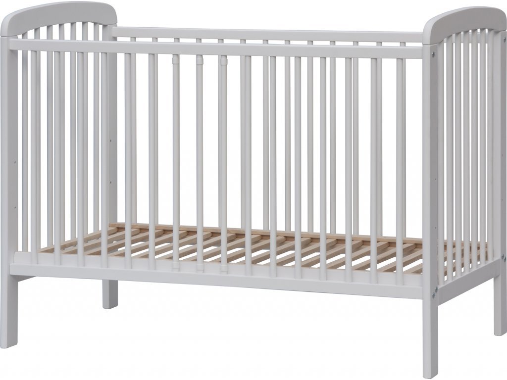 Bílá dětská postýlka z kvalitního bukového masivu. Má klasický tvar - 3 odnímatelné příčky a rošt je nastavitelný do 2 poloh. Je bezpečná i stabilní a proto ji využijete i po několik generací.