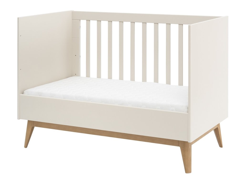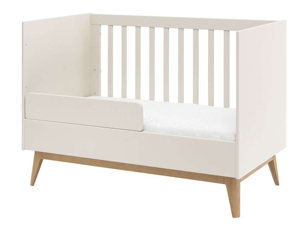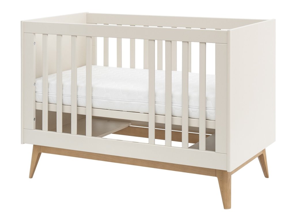 Jemná a nadčasová postýlka v kombinaci béžové barvy (champagne) a bukového dřeva. Poskytuje bezpečný a pohodlný spánek pro miminko a je součástí kolekce Seth – ideální pro kluky i holky.