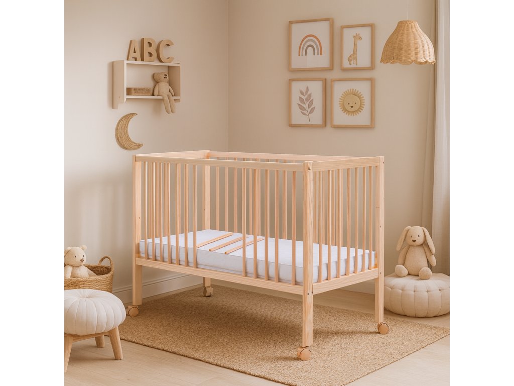 TIP: Doporučujeme dokoupit dětskou matraci 120 x 60 cm a kolečka na postýlku, které si můžete objednat z naší nabídky.