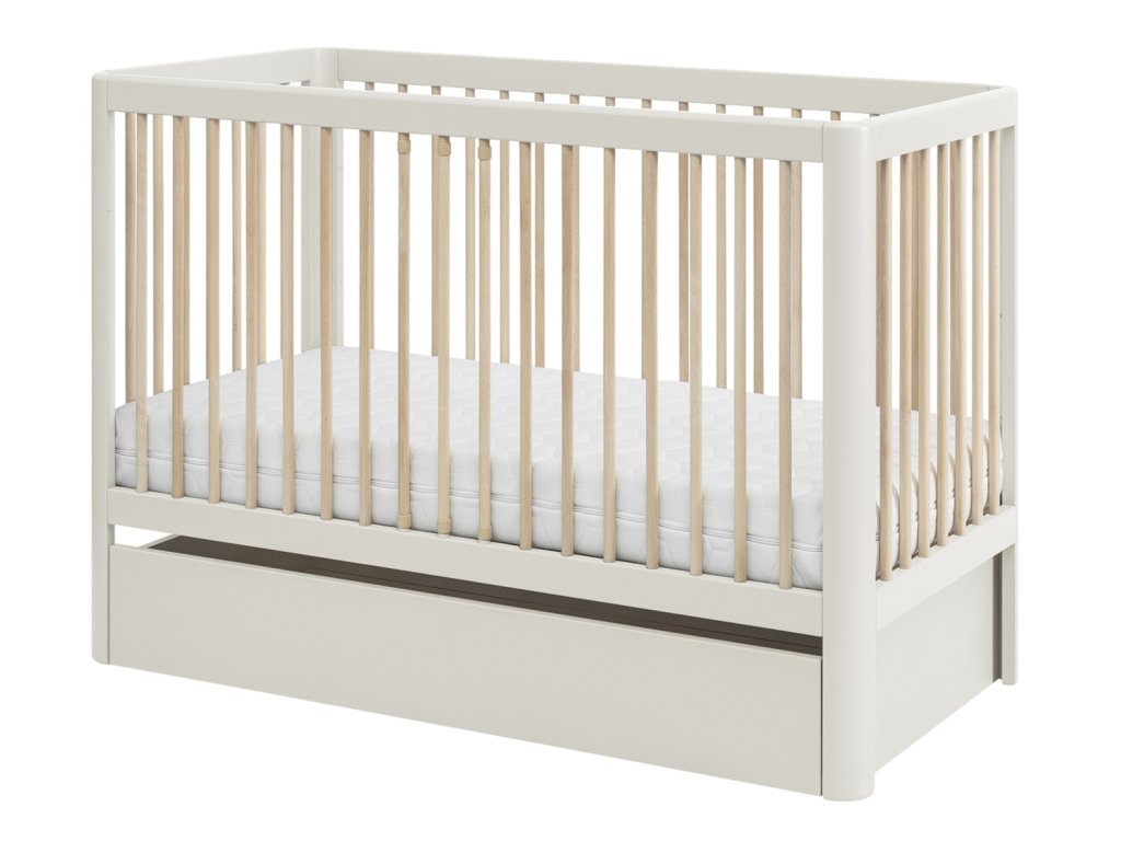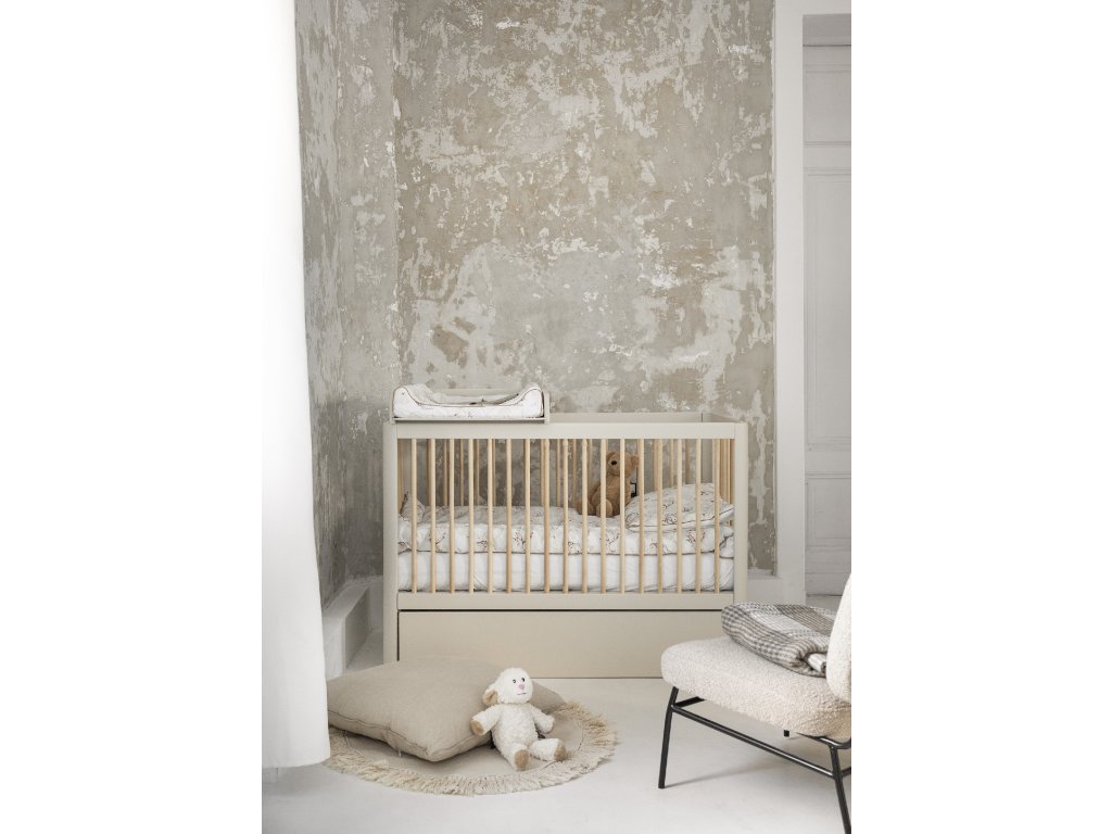 Tato béžová zásuvka vytváří s postýlkou ​​harmonický a jemný celek. Poskytuje nenápadný a praktický prostor pro dětské potřeby. Ideální volba pro útulný a přehledně zorganizovaný interiér.