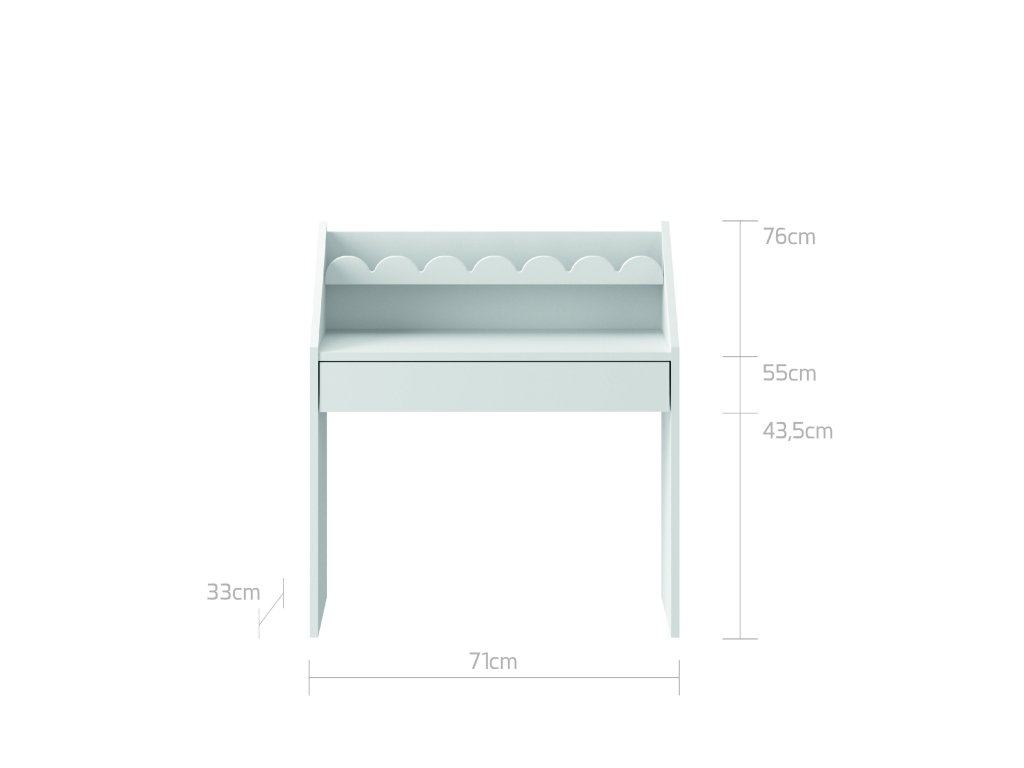 Svými kompaktními rozměry (71 × 33 × 76 cm) se ideálně hodí i do menších dětských pokojů, přičemž nabízí praktický úložný prostor v podobě zásuvky s GTV kováním a otevřené police. Ty pomáhají udržovat pořádek a mají ideální velikost pro uschování výkresů, tužek či oblíbených knih. Stolek je zároveň dokonale sladěn s židlem a regálem Nook, čímž vytváří harmonickou a funkční sestavu pro dětský pokoj.