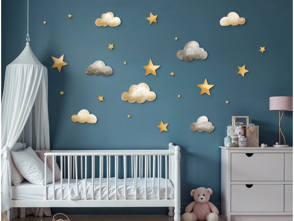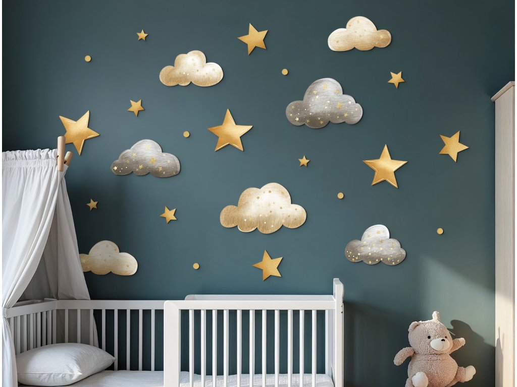 Sada nálepiek na stenu Oblaky a hviezdy (Rozměr obrazu 130 x 200 cm, Povrchová úprava 3D)
