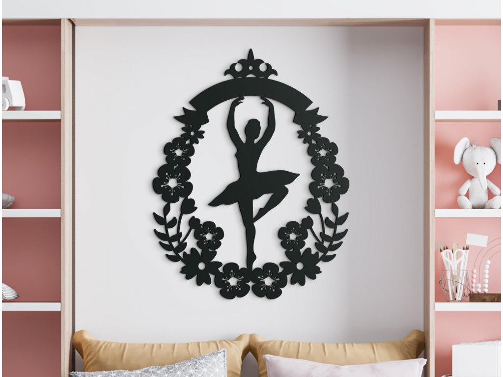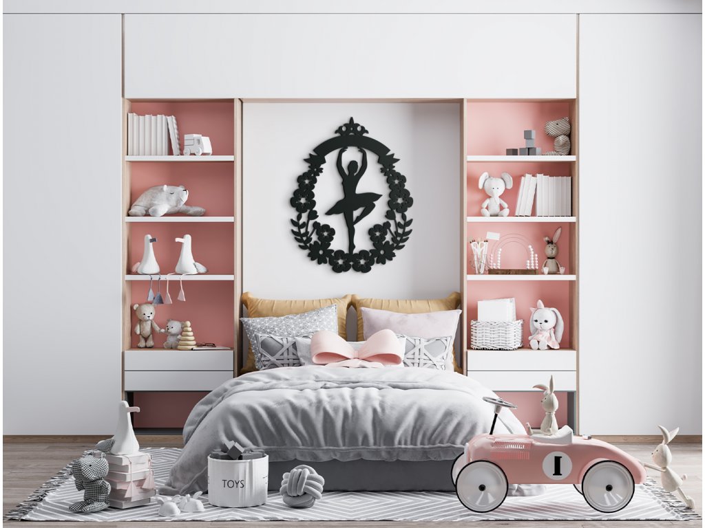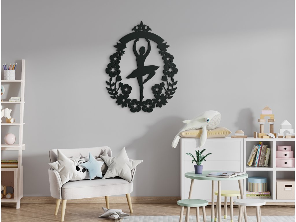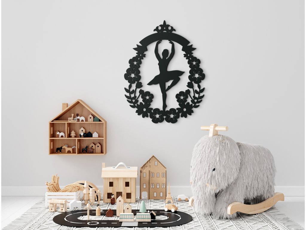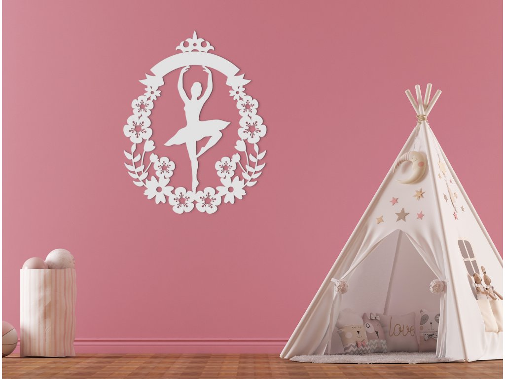 Máte doma nebo znáte malou princeznu, která sní růžový sen o baletu? V tom případě ji určitě potěší dřevěný obraz do dětského pokoje Půvabná primabalerína. Něžný a romantický design dětské dekorace na zeď s motivem baletky je zvýrazněn květinovou dekorací. Tanečnice na špičkách dělá piruetu a celý výjev je orámován květinkami.