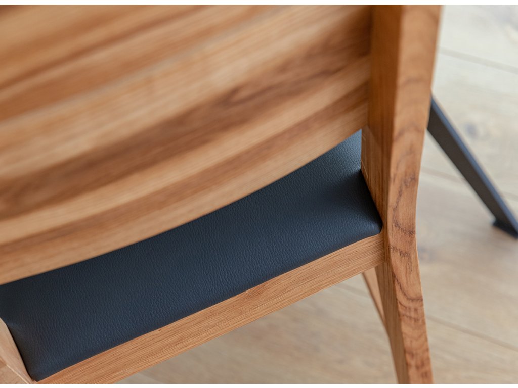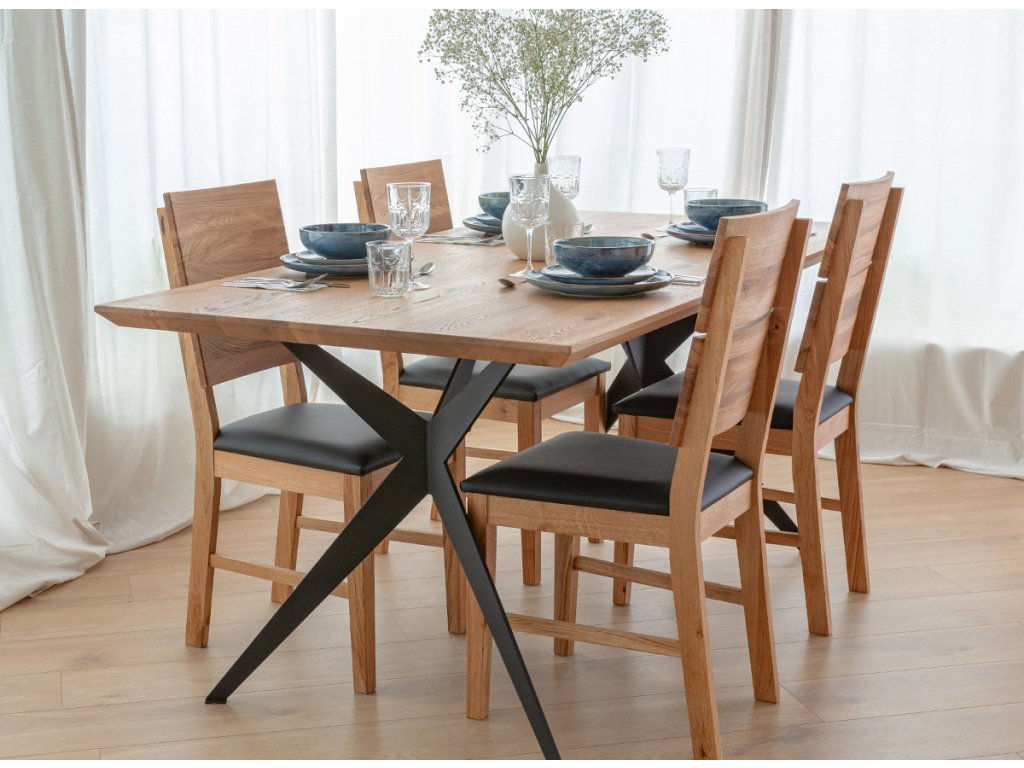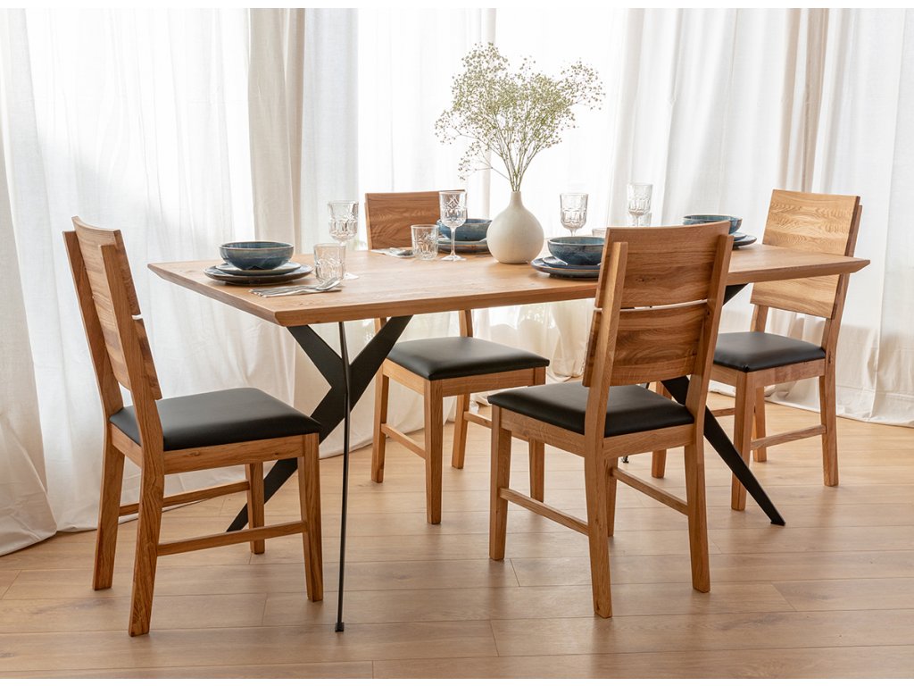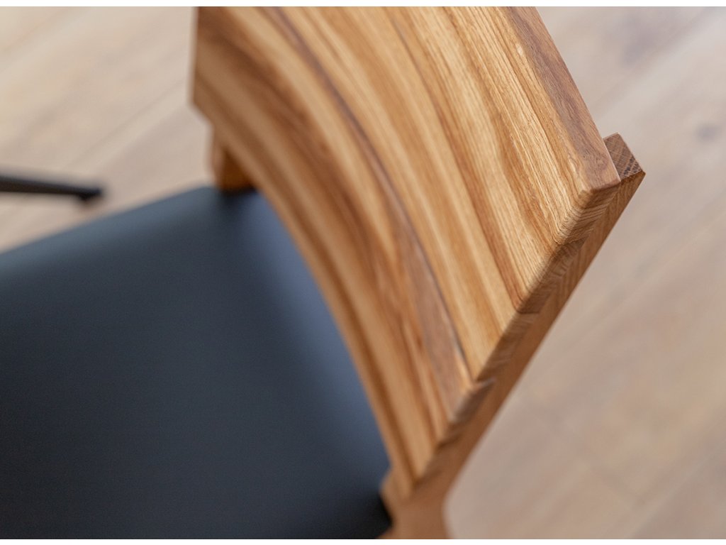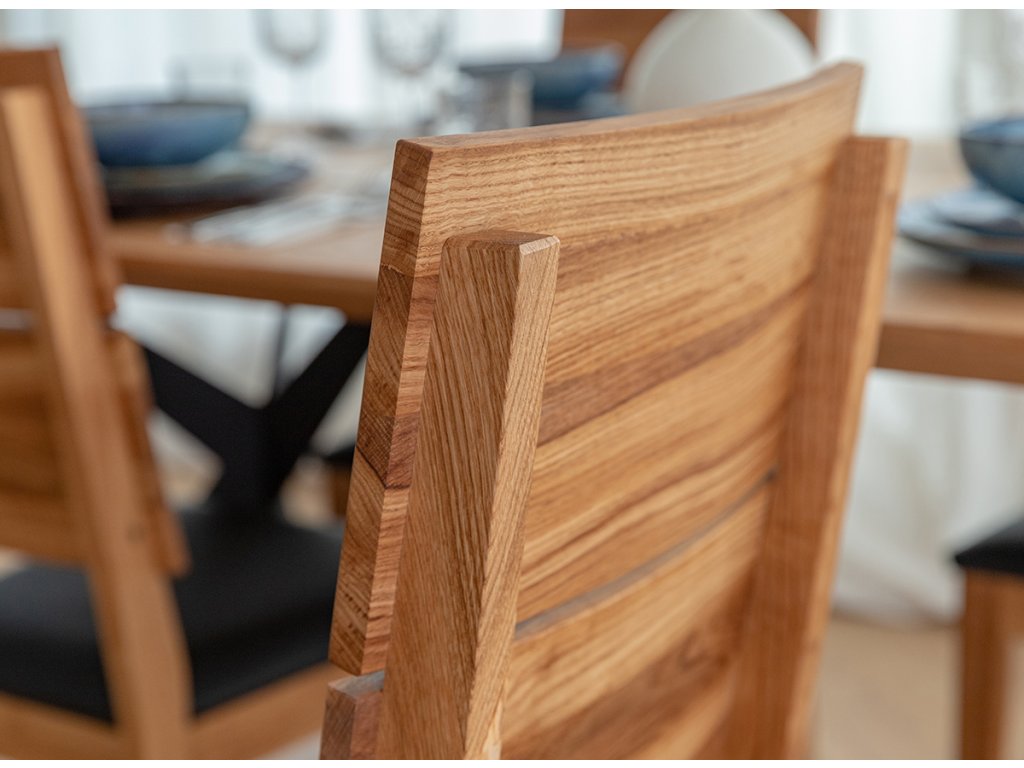 Dubová židle z přírodního dřeva je vybavena pohodlným sezením - čalouněnou pěnou pokrytou černou ekokůží. Dubová židle má široké, pevné opěradlo, které poskytuje pohodlnou oporu páteři. Dubové dřevo je mimořádně trvanlivé. Díky jeho tvrdosti jej můžete používat roky beze stopy opotřebování.