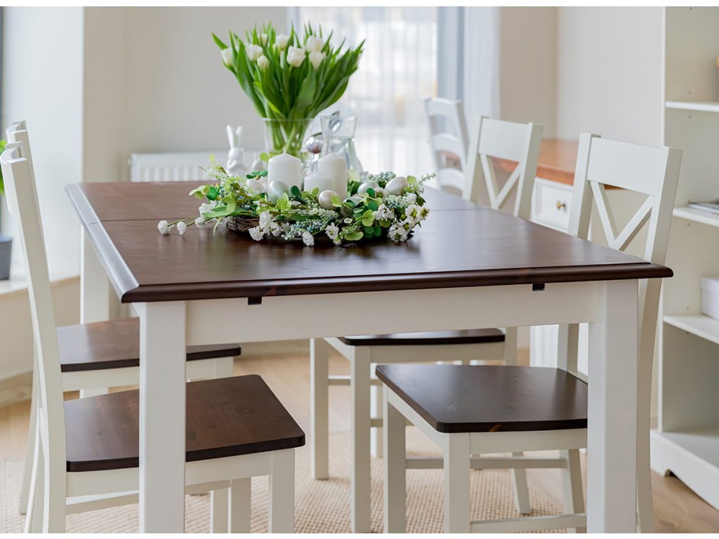 Rozkládací jídelní stůl z masivu Bellu - bílá/ořech