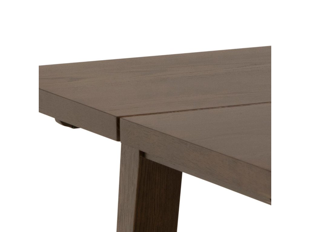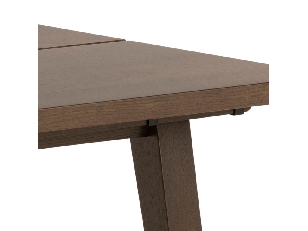 Stejně jako světlejší verze, i tato varianta umožňuje připojit prodlužovací desky, čímž pružně reaguje na počet hostů. Štíhlé nohy z masivního dubu jsou povrchově ošetřeny tak, aby vynikly tmavé póry dřeva, přičemž stolová deska bezpečně unese zátěž 100 kg.