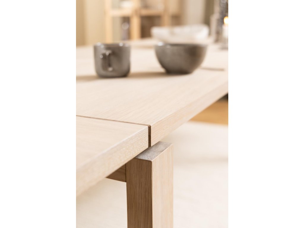 Obdélníkový stůl Linley je stvořen pro rodinná setkání i stylové večeře. Jeho povrch z běleného dubu působí moderně a přitom přírodně. Prodlužovací listy zvyšují praktičnost, aniž by utrpěl vzhled.