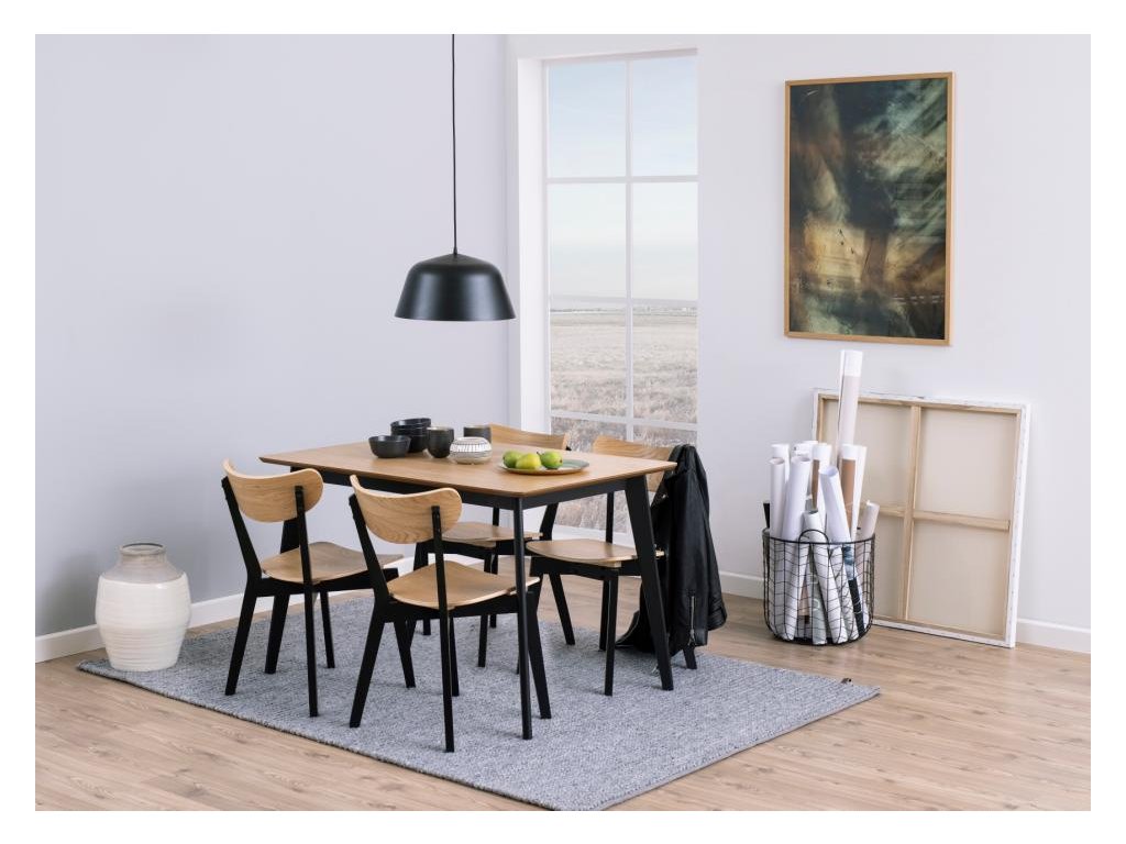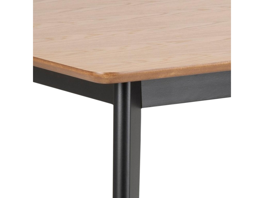 Stůl Roxby kombinuje přírodní vzhled dubové dýhy s robustní černou podnoží. Obdélníkový tvar poskytuje dostatek místa ke stolování a jeho čisté linie zapadnou do různých interiérových stylů. Pevná konstrukce z MDF a kaučuku zaručuje stabilitu a dlouhou životnost.