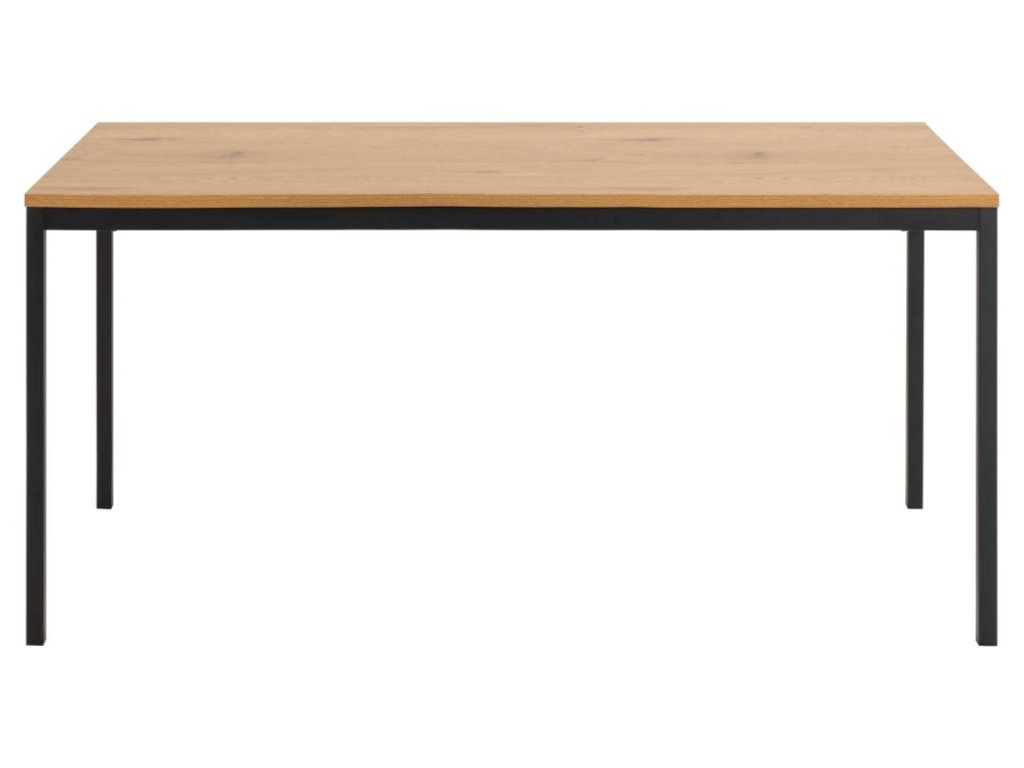 Jídelní stůl Seaford (160 × 80 × 74 cm) přináší do jídelny výrazný loftový charakter: matná deska v dekoru divokého dubu akcentuje přirozenou kresbu dřeva, zatímco čtvercové ocelové nohy v matné černé dodávají industriální ostrost a pevnost. Díky štíhlému profilu a volné výšce 68 cm působí odlehčeně, ale masivní konstrukce unese až 100 kg, takže zvládne každodenní stolování i sváteční hostiny.