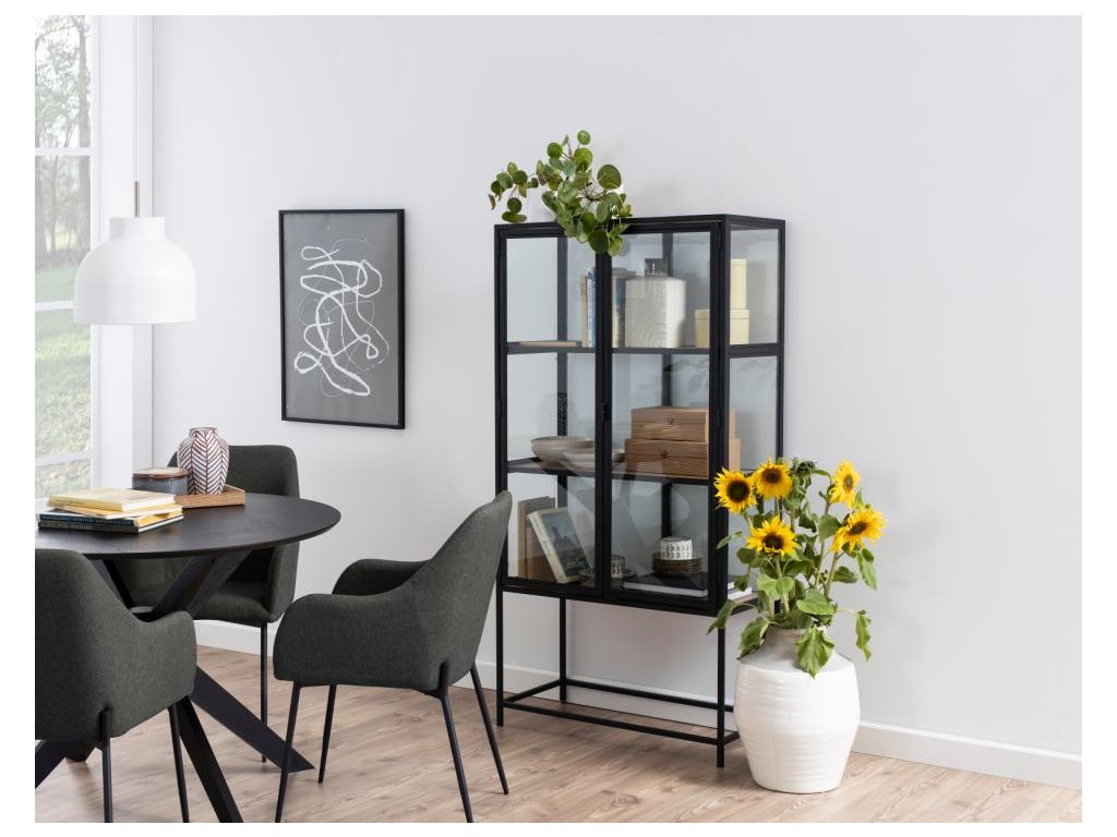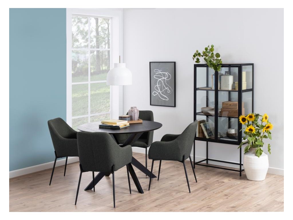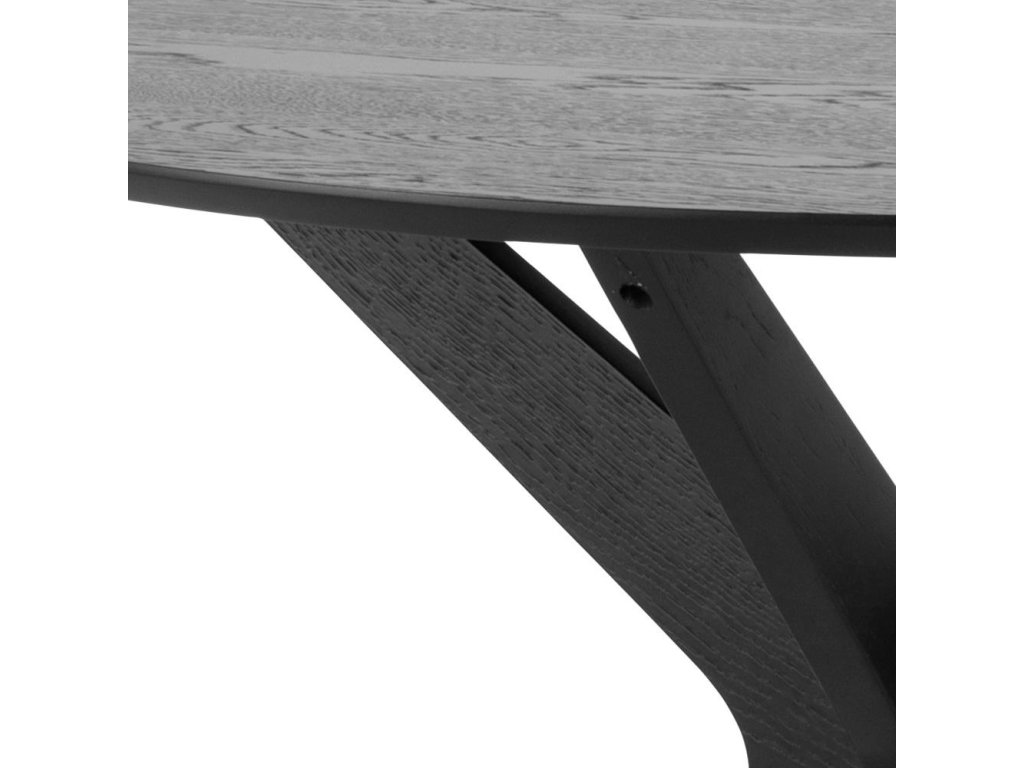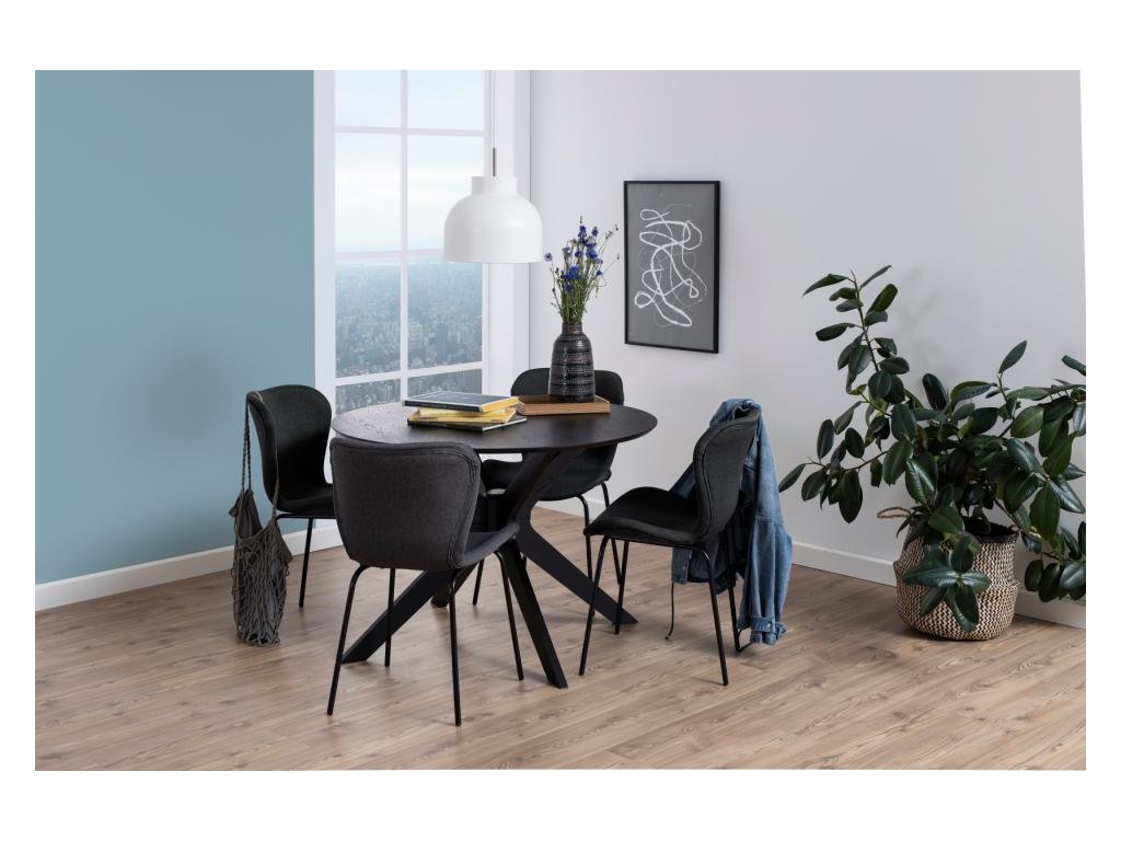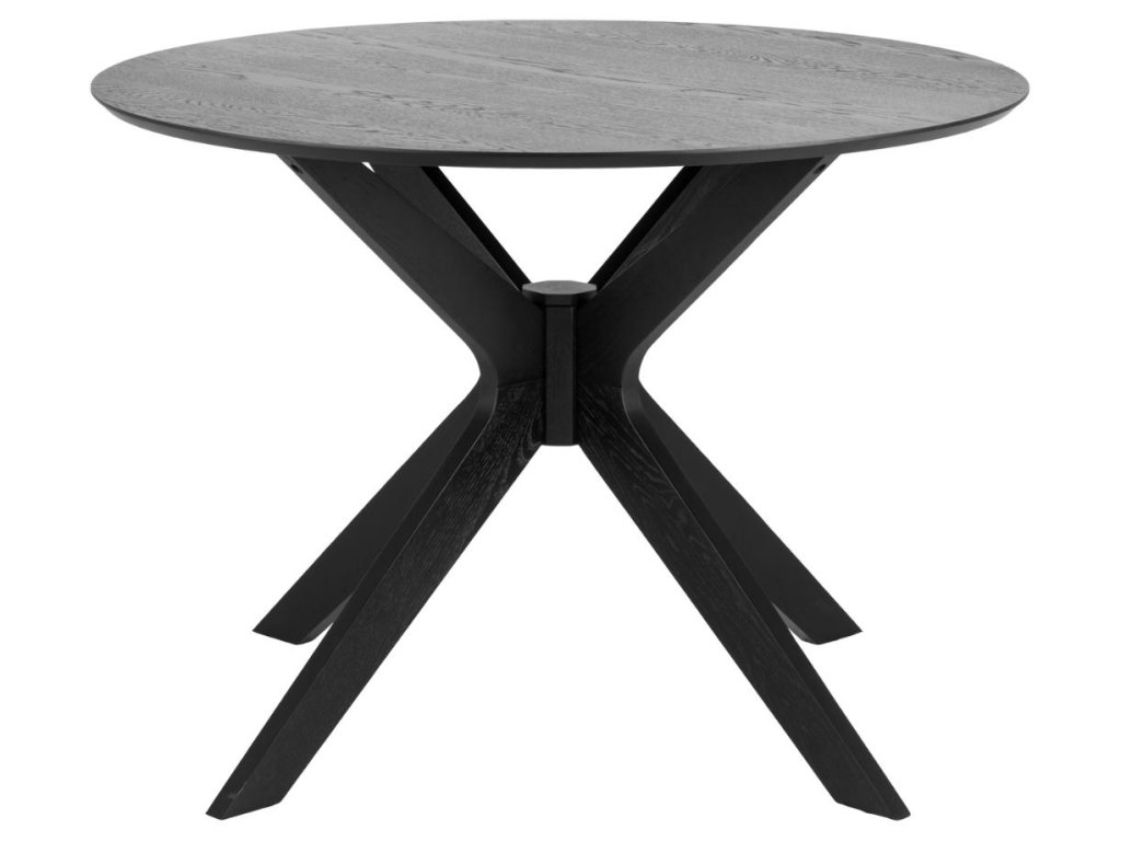 Jídelní stůl Duncan v černé barvě vyniká egancí a robustností. Kulatá deska je vhodná pro společné stolování v menších místnostech. Křížová základna z dubové dýhy dodává stolu stabilitu a styl. Je ideální do moderních jídelen se severským nádechem.