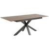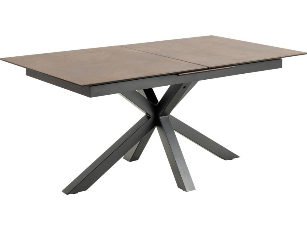 Stůl Heaven v rezavě hnědém provedení z hrubé keramiky vyniká sofistikovaným vzhledem a praktickým rozkládacím systémem. Křížová černá podnož poskytuje výjimečnou stabilitu. Synchronní prodloužení umožňuje rychlé rozšíření prostorů při stolování. Skvělý pro ty, kteří kombinují funkčnost a styl.