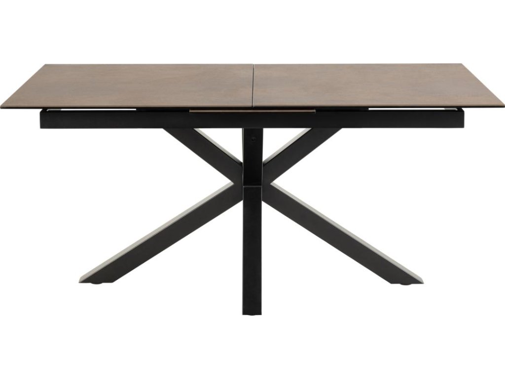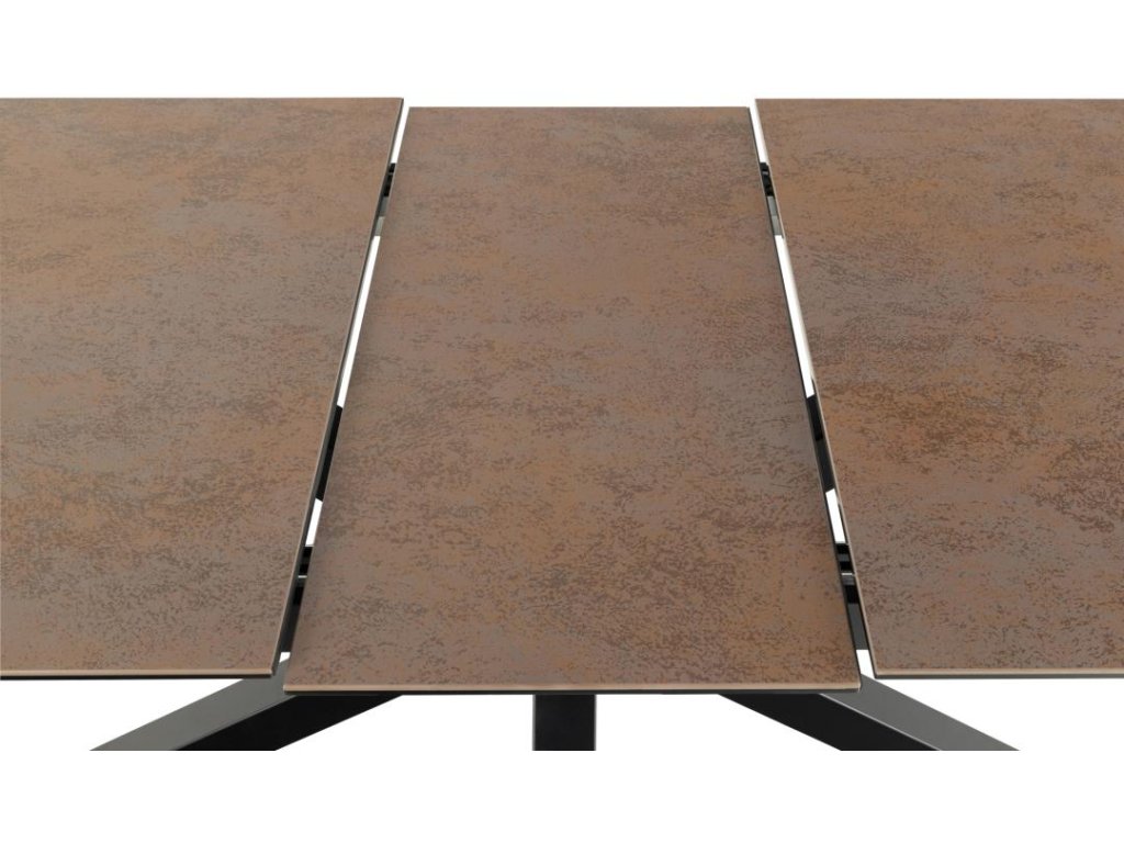 Stůl Heaven v rezavě hnědém provedení z hrubé keramiky vyniká sofistikovaným vzhledem a praktickým rozkládacím systémem. Křížová černá podnož poskytuje výjimečnou stabilitu. Synchronní prodloužení umožňuje rychlé rozšíření prostorů při stolování. Skvělý pro ty, kteří kombinují funkčnost a styl.