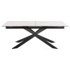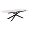 Stůl Irwine je elegantní a zároveň mimořádně funkční. Vrchní část z bílé keramiky Akranes vytváří dojem mramoru a je zároveň vysoce odolná. Černá křížová podnož dodává průmyslový charakter. Díky rozkládací funkci se snadno přizpůsobí většímu počtu hostů. Skvělá volba pro moderní jídelny.