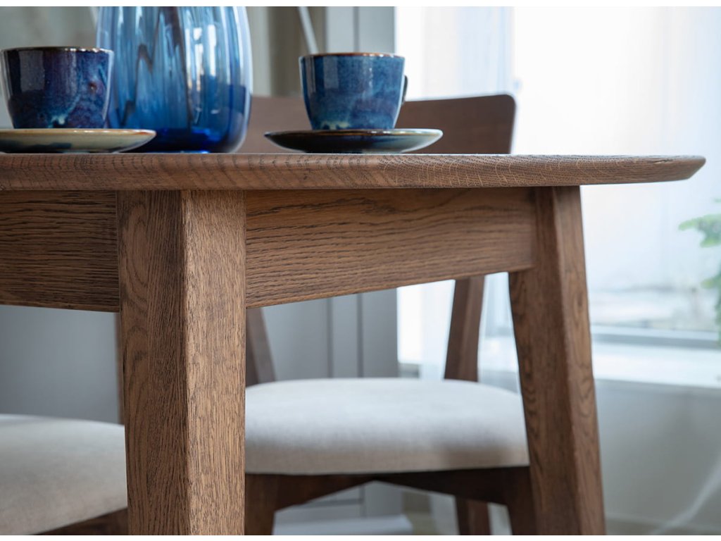 Dubový stůl se vyznačuje nejen atraktivním designem, ale také vysokou kvalitou. Celý kus nábytku je vyroben z vysoce kvalitního dubového dřeva v tabákově hnědé barvě, které se vyznačuje svou odolností, pevností a stabilitou. Díky tomu vám bude sloužit po mnoho let. Dubové dřevo se vyznačuje krásnou přírodní strukturou, kterou můžete vidět na všech částech stolu. Celý kus nábytku je naolejovaný, aby byla zajištěna jeho odolnost.