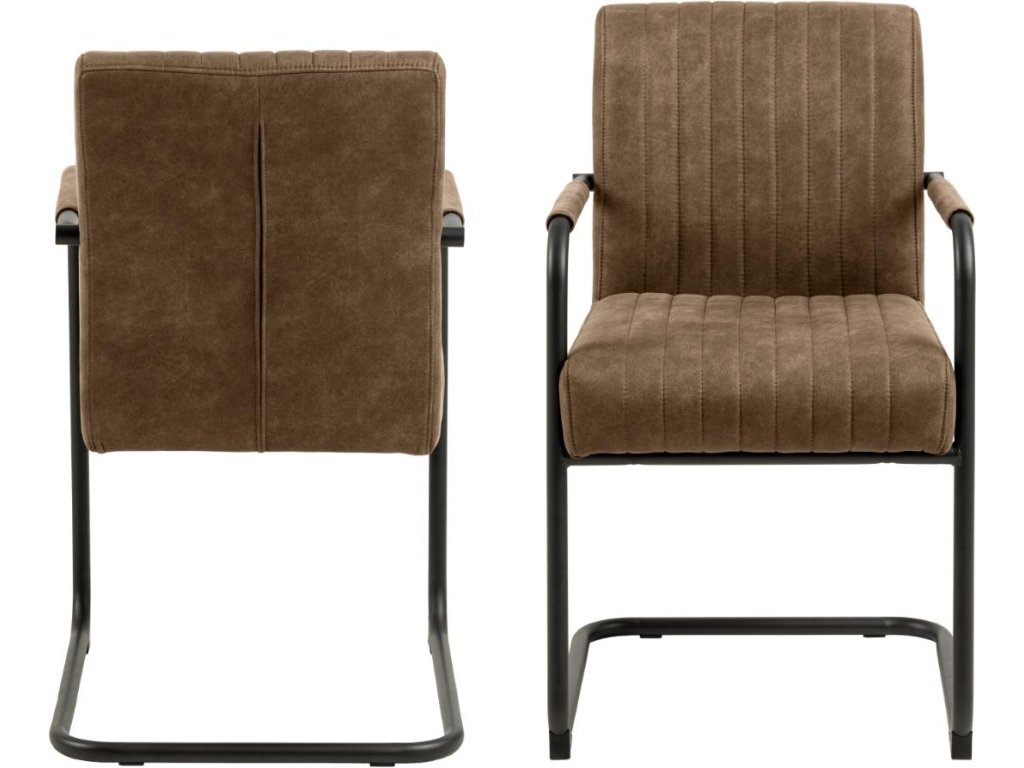 Křeslo Adele v hnědém odstínu nabízí ergonomický komfort a přitažlivý design. Všívané detaily, pružiny a pevná ocelová konstrukce zajišťují pohodlné sezení u stolu. Hodí se zejména k tmavším dřevěným stolům nebo industriálním interiérům.