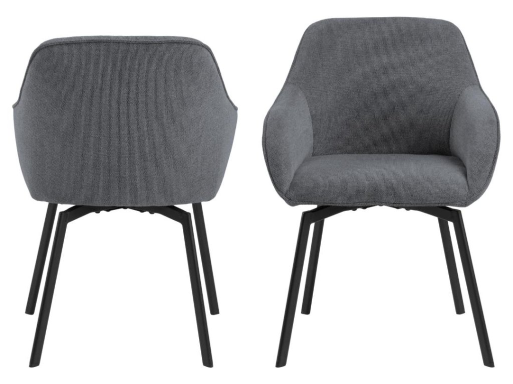 Souprava židlí Clara kombinuje pohodlí loketní opěrky s moderním designem. Šedé čalounění Caso a černá ocelovou základnu s práškovým nástřikem doplňuje funkce automatický návrat. Balení obsahuje 2 ks. Rozměry: 83,5 × 58,5 × 55,5 cm.