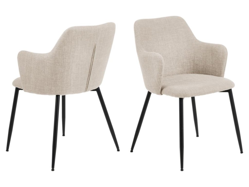 Křeslo Ilsa v béžové barvě působí útulně a elegantně. S černou ocelovou základnou a doplňky jako knoflík či zip je stylovým doplňkem do každé moderní jídelny.