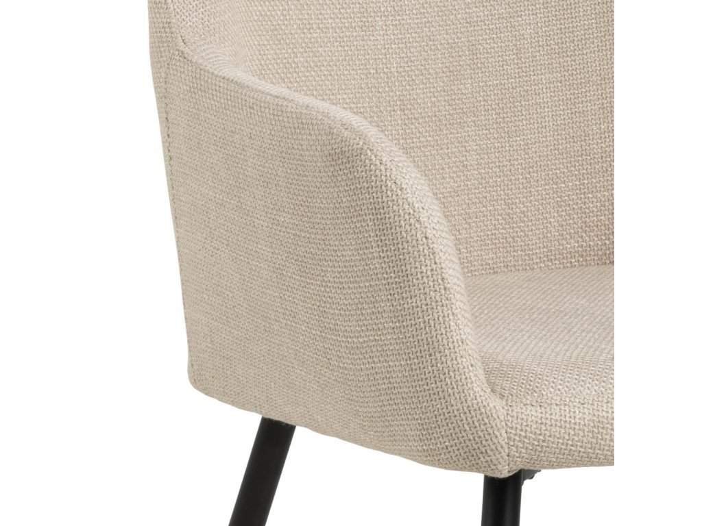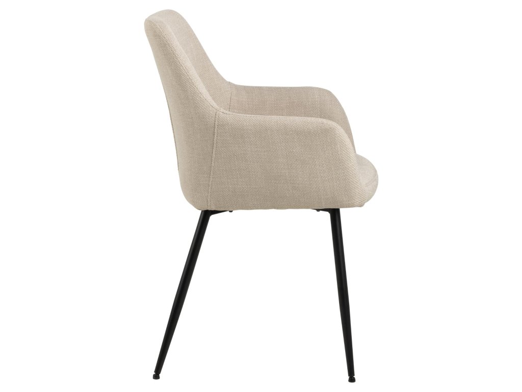 Židle Lizzy s loketními opěrkami v béžové barvě působí elegantně a moderně. Kovová základna a zipové detaily zvyšují vizuální atraktivitu. Vhodná do domácích i komerčních jídelen. Komfort zajišťuje kvalitní čalounění a pevná konstrukce.