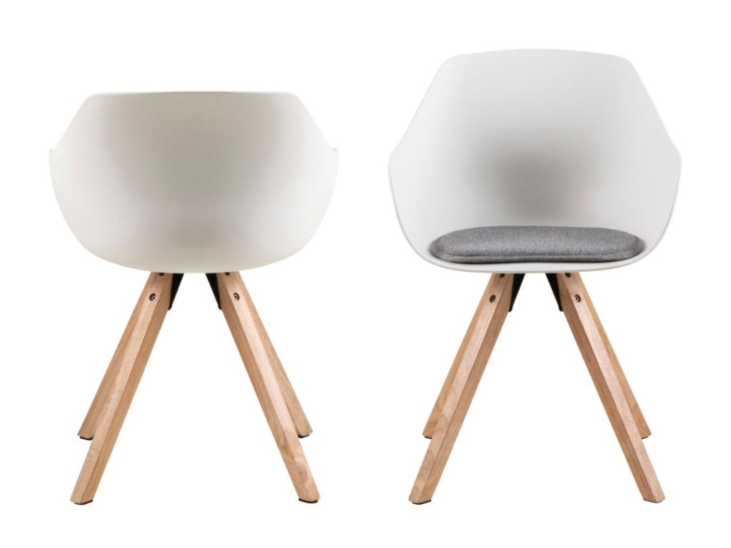 Křeslo Tina s loketními opěrkami kombinuje elegantní materiály a skandinávský styl. Sedadlo ve světle šedé látce je doplněno o bílý plastový rám a dřevěnou základnu z mořeného kaučukovníku. Pohodlí zvyšuje volný polštářek k sezení. V balení se nacházejí dvě křesla.