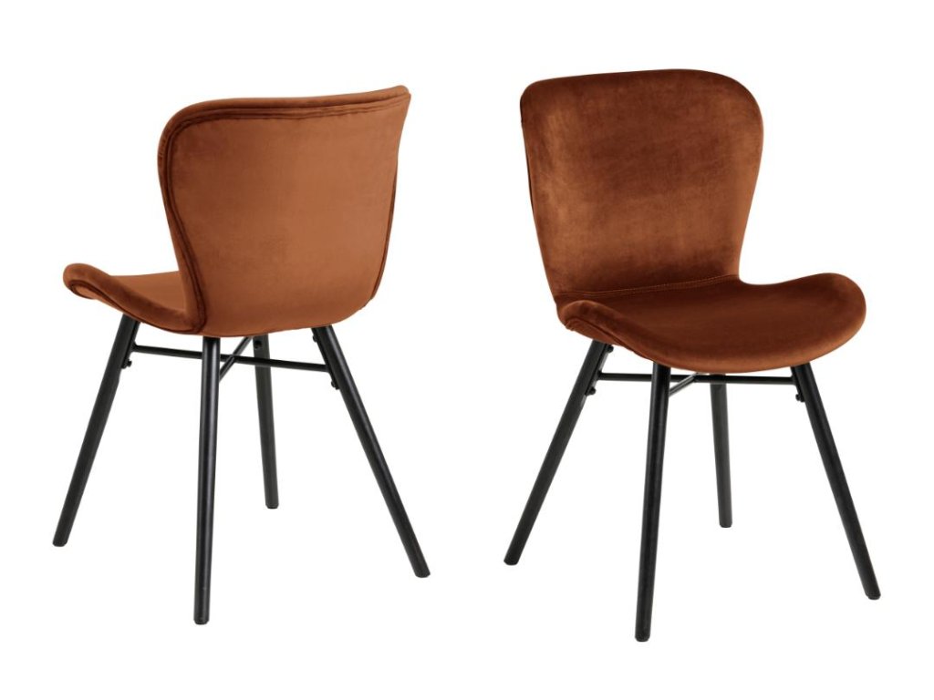 Židle Batilda A1 v teplé měděné barvě vyniká jemnou látkou a kontrastní černou podnoží. Vyrobená z kvalitních materiálů nabízí pohodlí i eleganci. Perfektní volba do stylových jídelen či kuchyní.