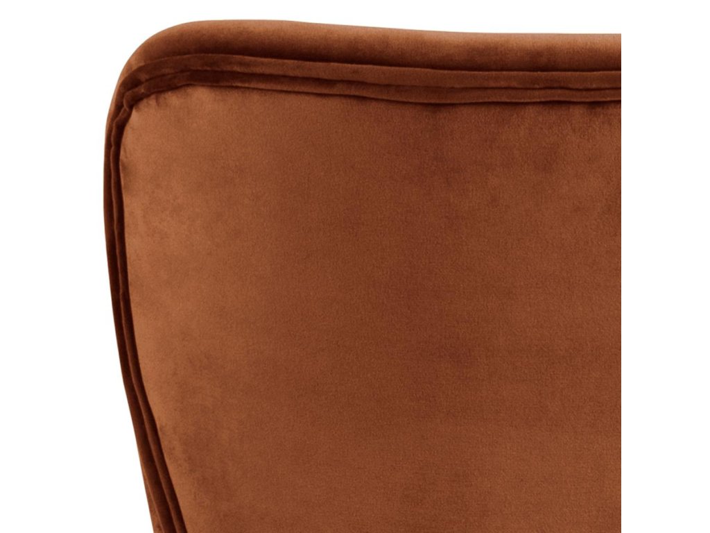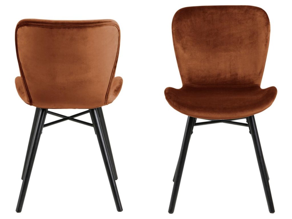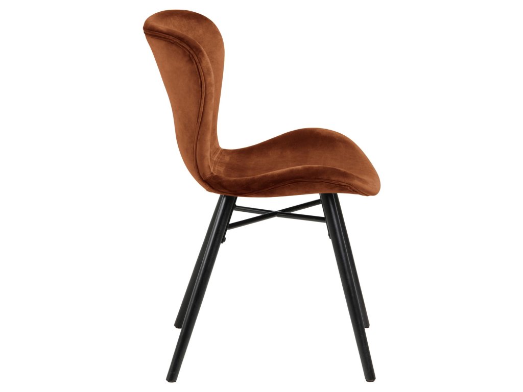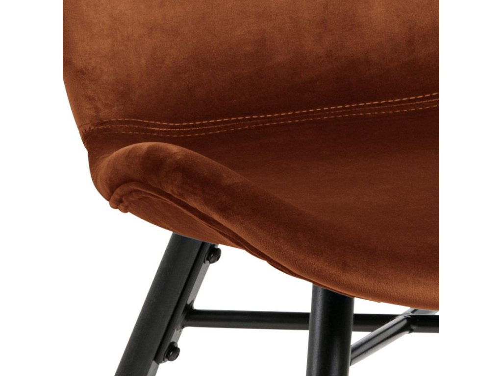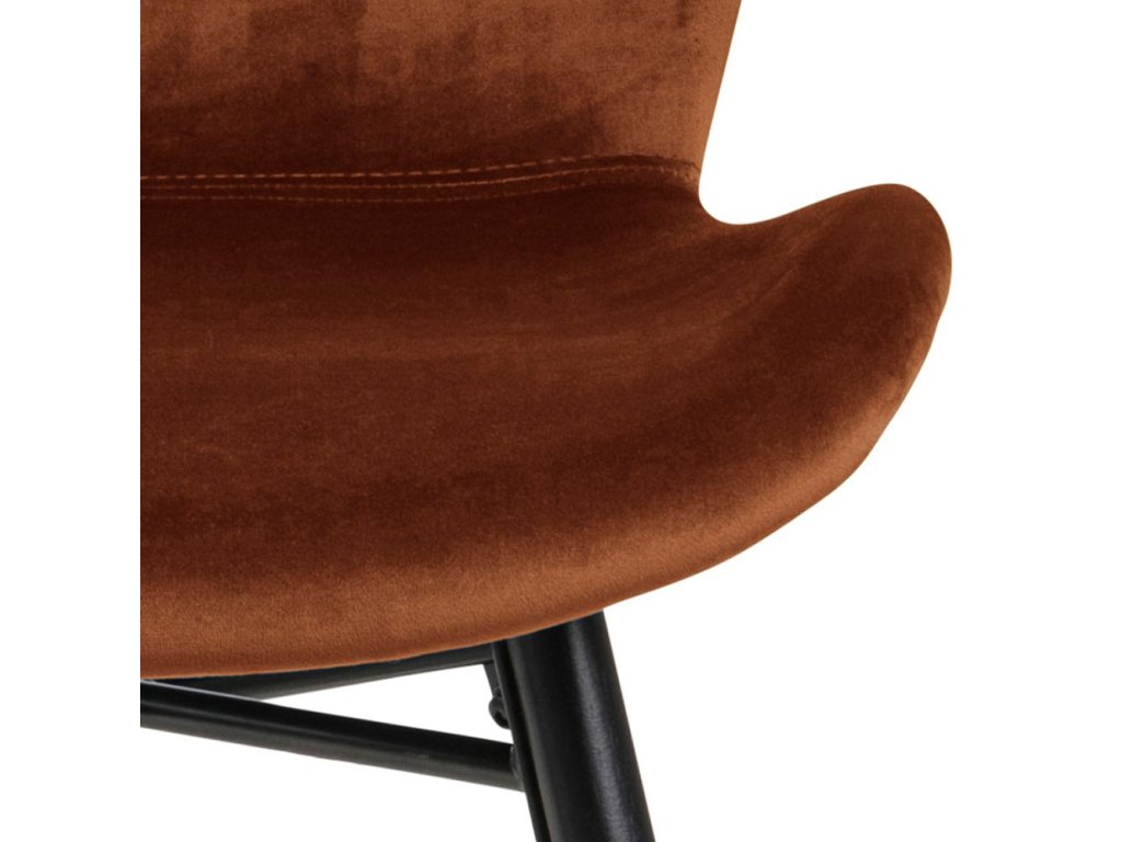 Židle Batilda A1 v teplé měděné barvě vyniká jemnou látkou a kontrastní černou podnoží. Vyrobená z kvalitních materiálů nabízí pohodlí i eleganci. Perfektní volba do stylových jídelen či kuchyní.