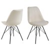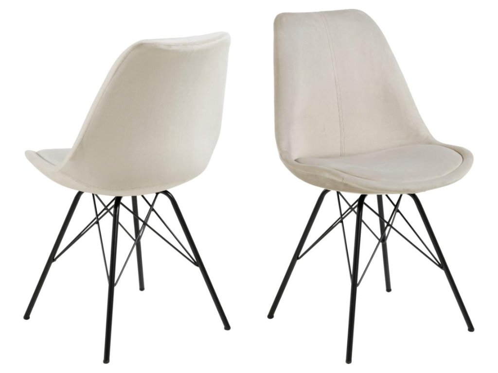 Židle Eris v pískové barvě je elegantní volba pro moderní interiér. Černá kovová základna v kombinaci s jemným čalouněním vytváří harmonický celek. V balení jsou dvě židle. Vhodné do jídelního koutku nebo obývacího pokoje.