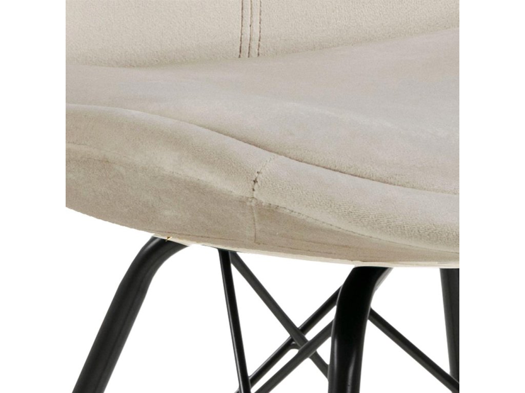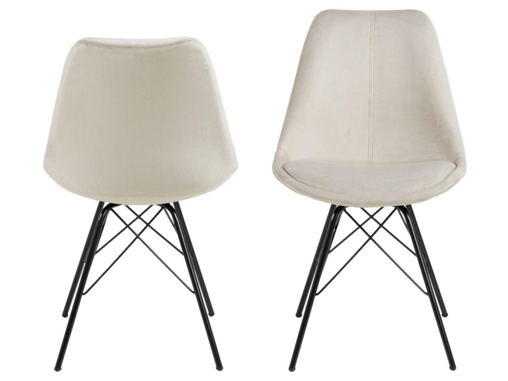 Židle Eris v pískové barvě je elegantní volba pro moderní interiér. Černá kovová základna v kombinaci s jemným čalouněním vytváří harmonický celek. V balení jsou dvě židle. Vhodné do jídelního koutku nebo obývacího pokoje.