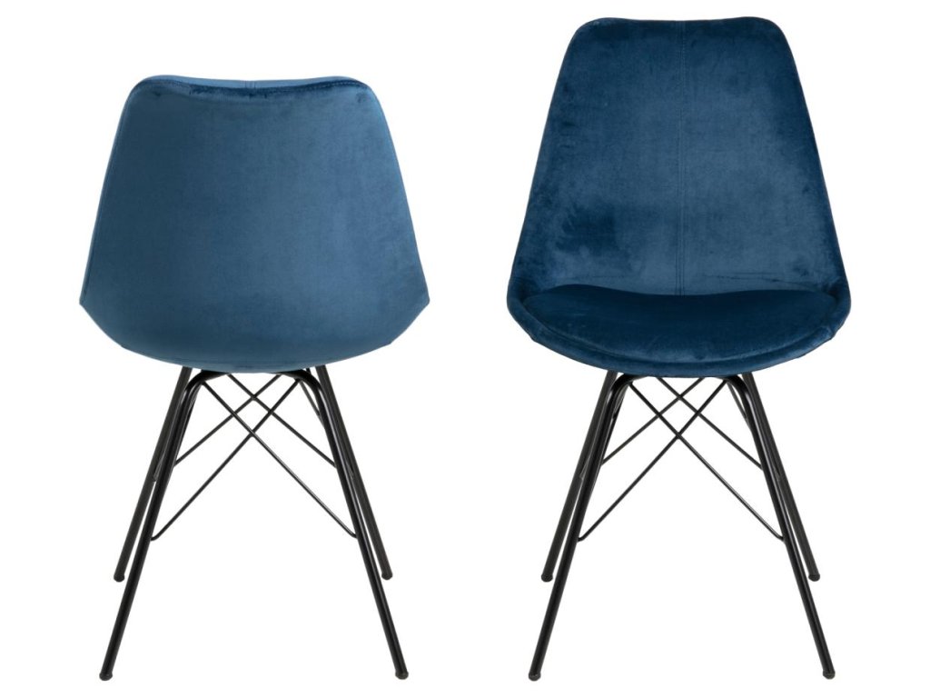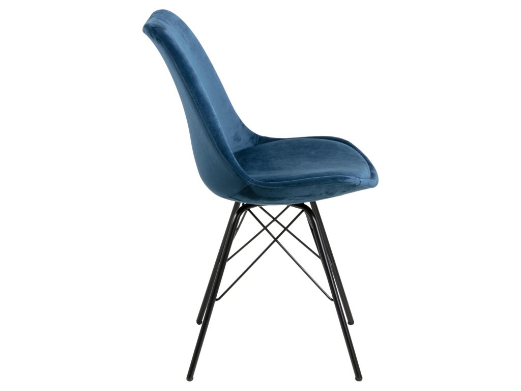 Židle Eris v tmavě modré látce působí svěže a sofistikovaně. Pevná černá ocelová konstrukce zajišťuje dlouhodobou stabilitu. Tvarované sedátko s kvalitním čalouněním poskytuje vysoký komfort. Výborná volba pro moderní jídelní prostory.