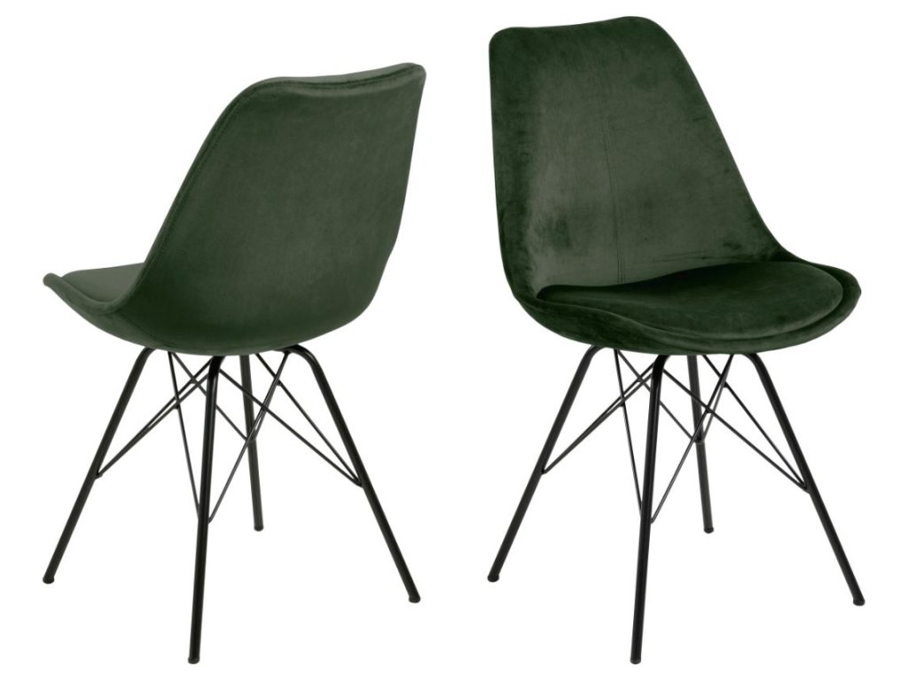 Zelená židle Eris v lesním odstínu s černou základnou je ideální volba pro milovníky přírodních tónů. Kvalitní látka a kovová konstrukce zajišťují komfort a stabilitu. Vhodná do moderních i rustikálních interiérů. Balení po 2 ks.
