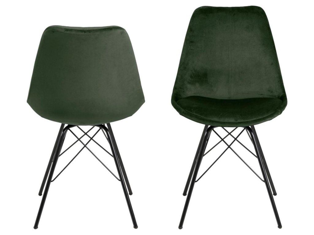 Zelená židle Eris v lesním odstínu s černou základnou je ideální volba pro milovníky přírodních tónů. Kvalitní látka a kovová konstrukce zajišťují komfort a stabilitu. Vhodná do moderních i rustikálních interiérů. Balení po 2 ks.