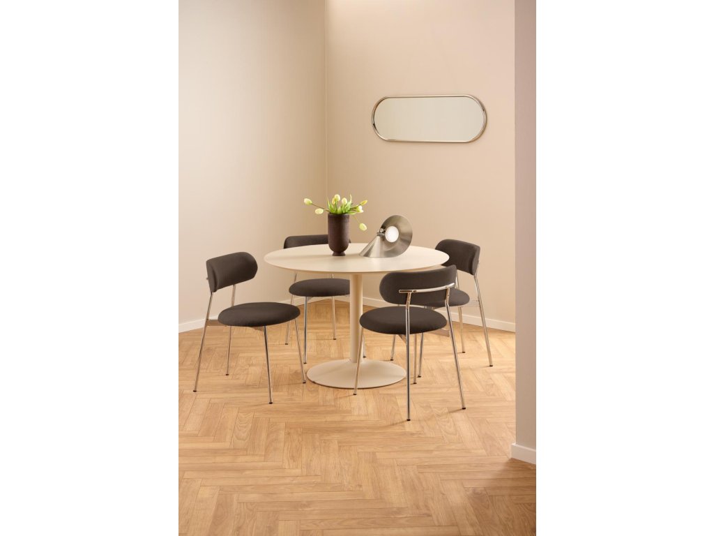 stolička je dostupná v elegantní barvě, v provedení hnědá/chrom, tak ji snadno sladíte s jakýmkoli interiérem – od klasického až po moderní. Stabilní konstrukce dodává židli pevnost a odolnost, zatímco čalounění z příjemné látky působí luxusně a příjemně na dotek.