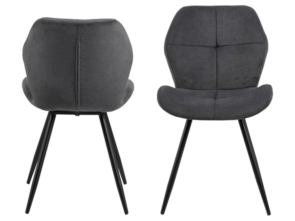 Židle Petri v antracitové barvě s černou kovovou konstrukcí je ideální pro pohodlné stolování. Čalouněný sedák se čtvercovým prošíváním a zipem podtrhuje její designový charakter. Odolná konstrukce vydrží i častější používání. V balení jsou dva kusy.