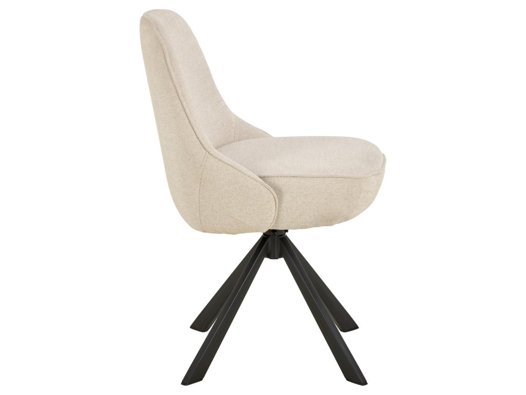 Otočná jídelní židle Carlton v béžové látce je vybavena komfortními taštičkovými pružinami a pevnou černou kovovou podnoží. Díky otočnému mechanismu se ideálně hodí k modernímu stolu. Židle má elegantní vzhled a zároveň poskytuje vysoký komfort. Vhodná do stylové jídelny i pracovny.