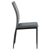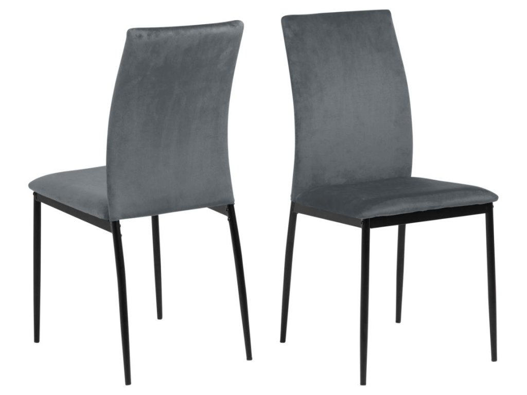 Židle Demina v tmavě šedé barvě poskytuje vysoký komfort sezení díky čalounění a ergonomickému tvaru. Černá ocelová konstrukce zaručuje stabilitu. Set čtyř kusů je ideální pro rodinné stolování nebo moderní restaurace.