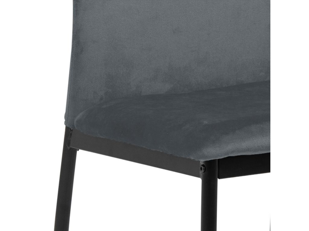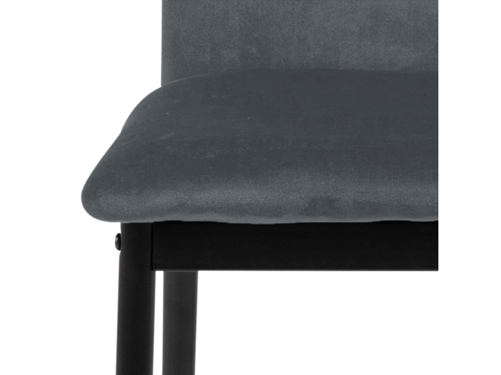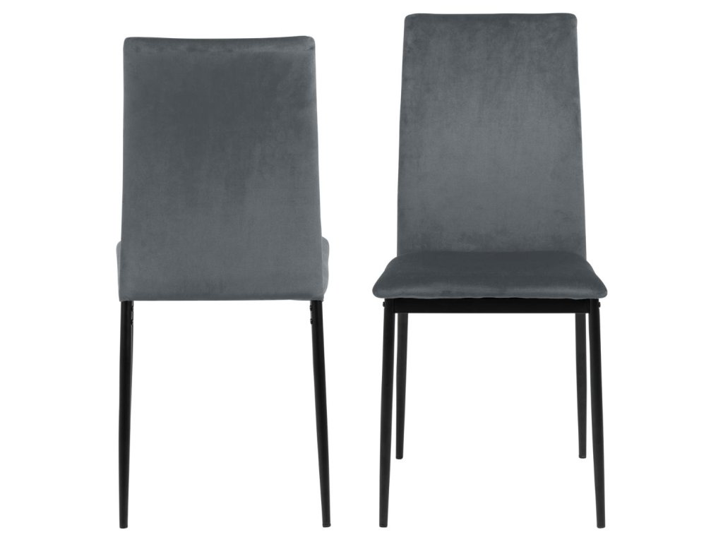 Židle Demina v tmavě šedé barvě poskytuje vysoký komfort sezení díky čalounění a ergonomickému tvaru. Černá ocelová konstrukce zaručuje stabilitu. Set čtyř kusů je ideální pro rodinné stolování nebo moderní restaurace.